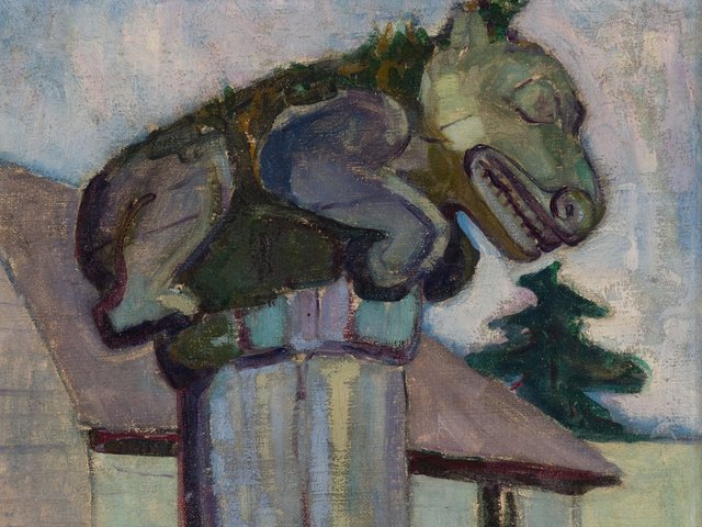 Riopelle painted Hommage in tribute his partner of many years, American artist Joan Mitchell, who predeceased him by a decade, and was created at his studio on an isolated island in the estuary of the St Lawrence River near Québec City. He took up residence there in his last years after having spent much of his life in Paris, where he moved in his early twenties. A plan is afoot to build a small institution devoted to Riopelle on an adjacent St Lawrence island.