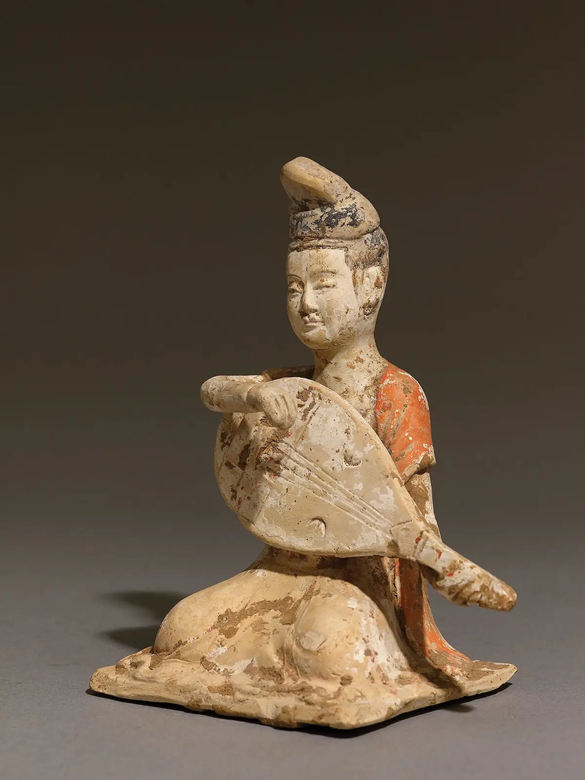 A ceramic figure of a lute player from China’s Tang dynasty (618–907)