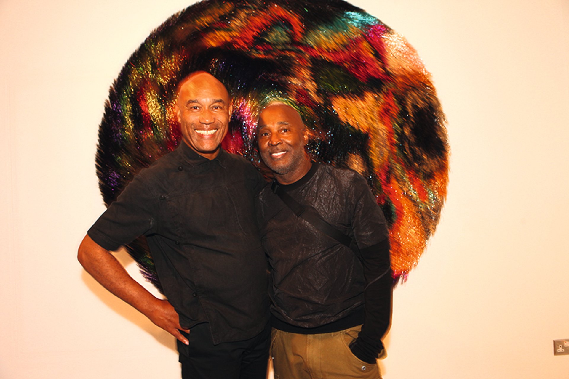 Its rare that an artist is moved to tears during a public talk, but last night the Chicago-based artist Nick Cave was visibly affected when, in conversation with V&A East director Gus Casely-Hayford at the Royal Institute, he recalled how he felt when his family first came to his studio see his work. “I didn’t think they understood what I was doing, so for me to see them get it, it was so intense,” he said, wiping his eyes at the memory. There’s certainly intensity aplenty in Cave’s three works currently on show at Holtermann Fine Art, featuring casts of the artist’s body parts, wreaths of metal flowers and a tondo-pelt of vivid bristling metal filaments .