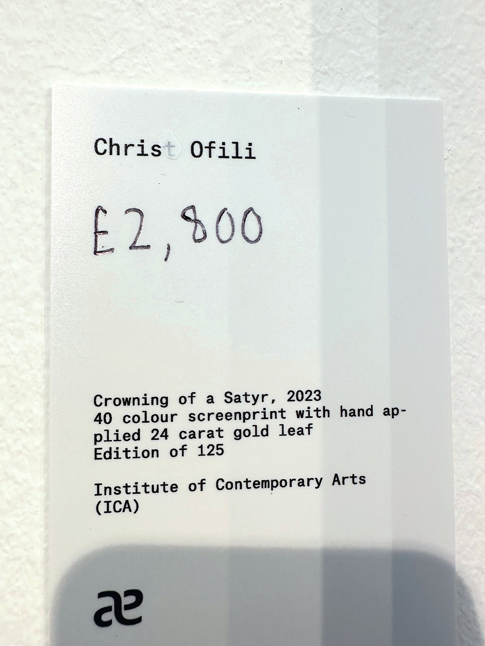 The art world can be a harsh place; indeed, at the Allied Editions stand at Frieze London, it looked like none other than the son of god had had his career cut short (thanks to a few strokes of Tippex). The label for a work by the UK-based artist Chris Ofili had the vestige of a “T” at the end of Ofili’s first name—the letter having been redacted, but not quite thoroughly enough.