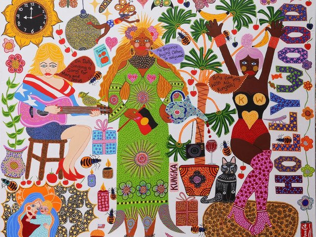 In Albert’s own work, also named Story, Place, audiences will encounter a sprawling installation composed largely of ‘Aboriginalia’, kitsch representations of Australia’s First Peoples once produced en masse for tourists, juxtaposed with text pieces. In a first, Albert has heavily intervened with these items, to “give voice to these objects”, he says.