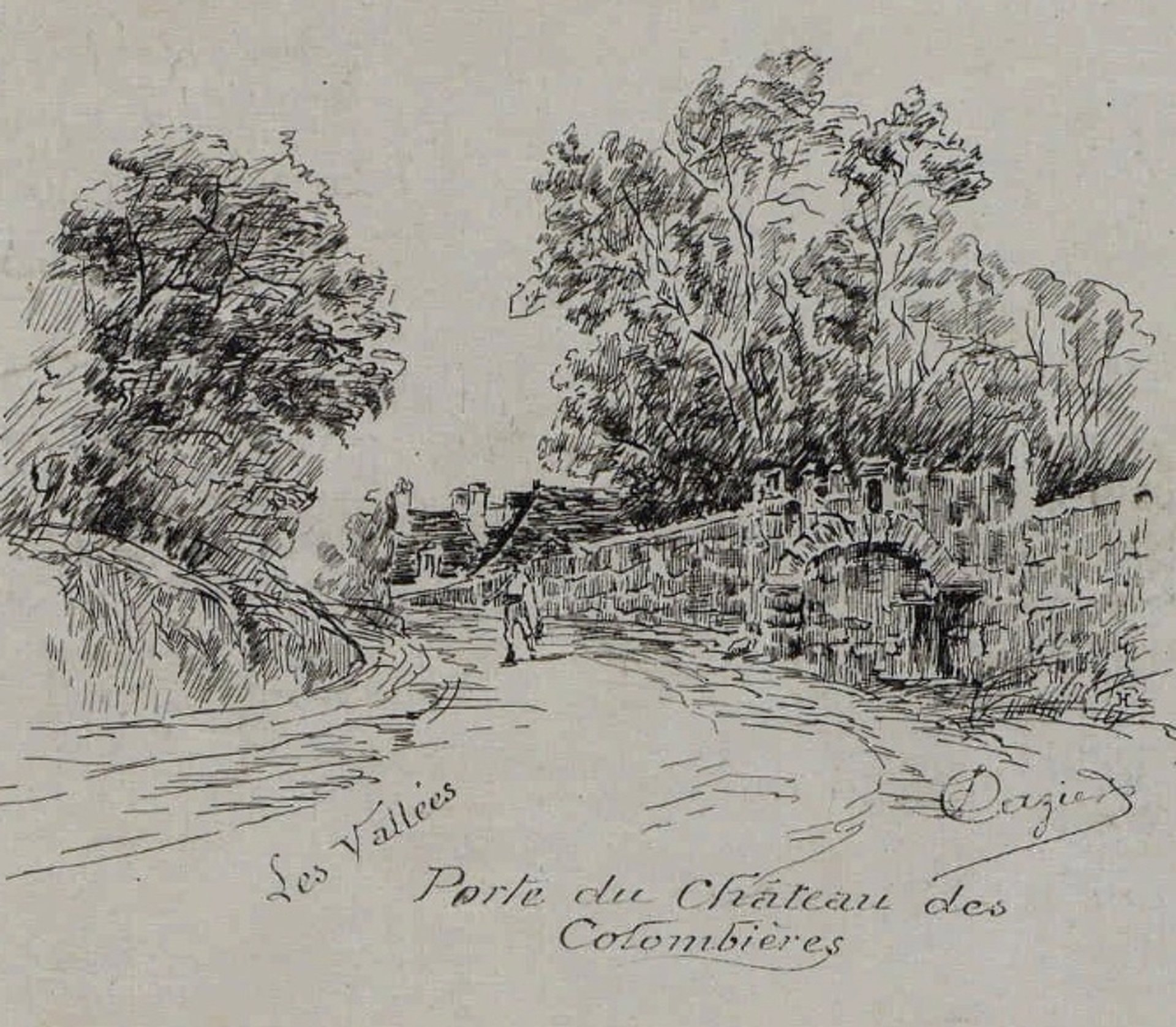 Henri Mataigne’s drawing Porte du Château des Colombières (Gate of the Château of Colombières) in his Monographie Communale (1899)