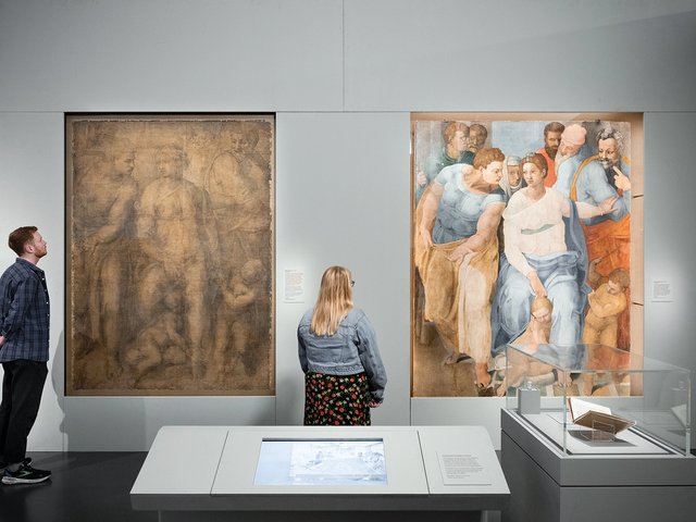 The drawings themselves are a delightful jumble of faces, limbs and torsos. Some seem to have been him remembering works he’d already created, while others may have been blueprints for work he was yet to do. One nude, for example, may be a forerunner for the figure of Eve in artist's The Last Judgement (1535-41), which he created for Rome's Sistine Chapel after patching things up with the pope—adding to the famous ceiling he had painted previously. A set of legs, meanwhile, are reminiscent of the knees on the sculpture of Giuliano de’ Medici in the chapel above, which Michelangelo had completed a few years earlier. And one face may even be a Michelangelo self portrait, echoing a similar work held in the Casa Buonarroti, his one-time home and now museum, a few streets away.