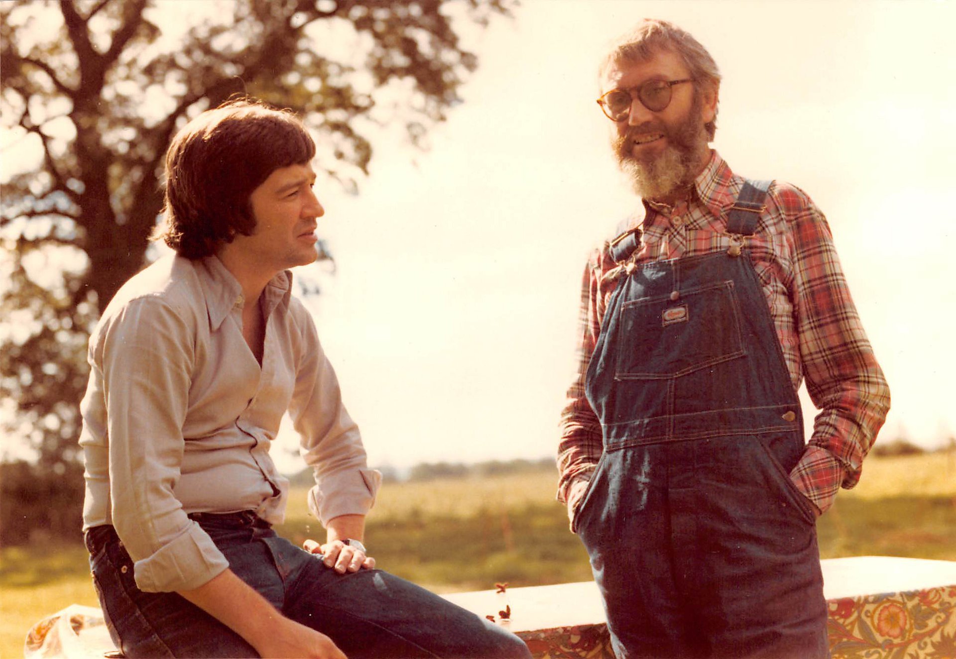 Alan Cristea and Joe Tilson in Christian Malford, Wiltshire, 1970s © Alan Cristea