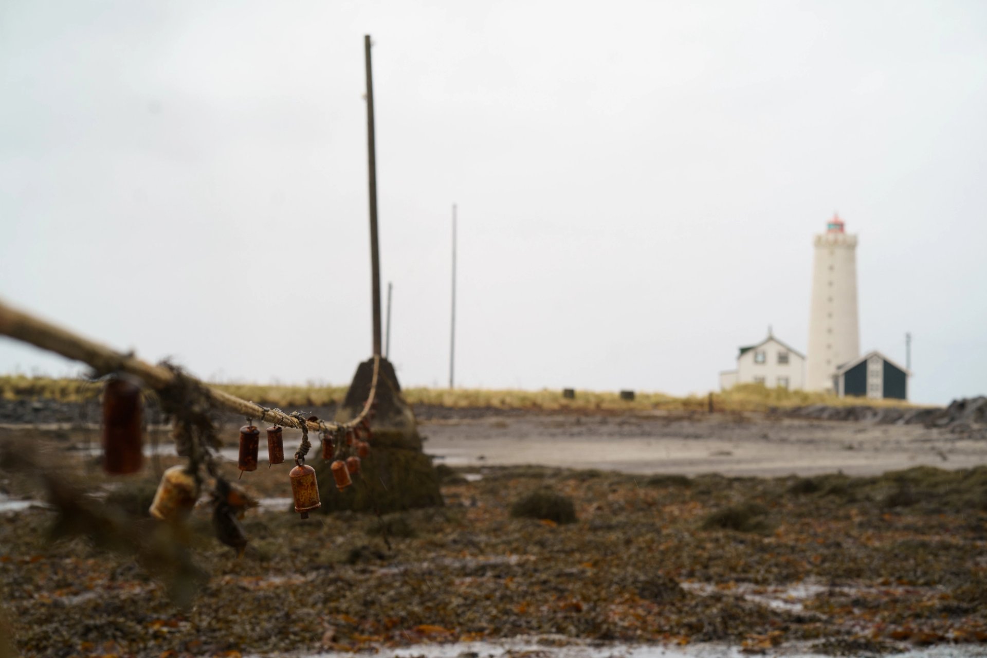 Precious Okoyomon and Dozi Khanu's bells installation at Grótta Lighthouse Photo: Vikram Pradhan