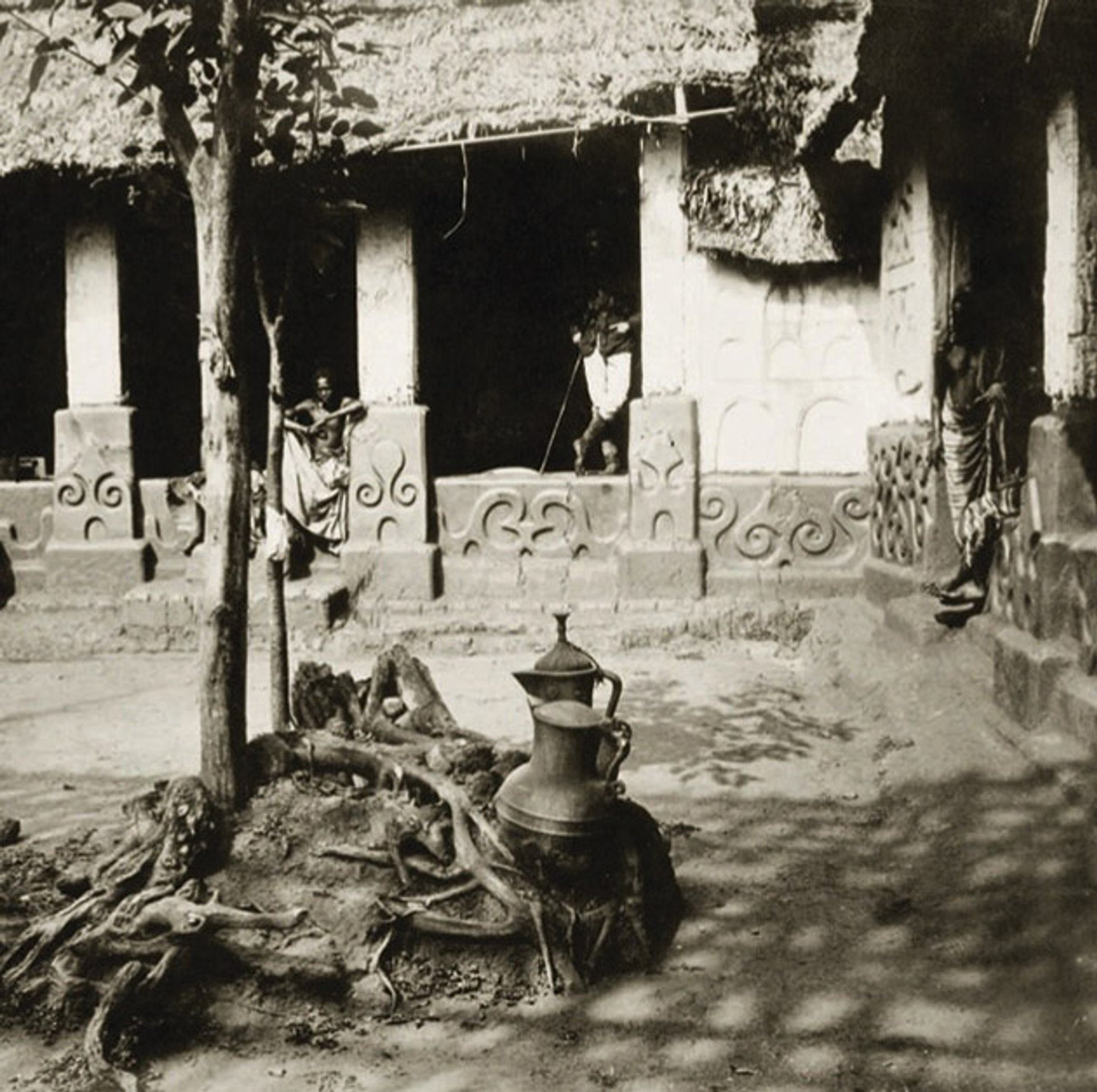 This 1884 photograph of the royal compound in Kumasi in modern-day Ghana shows the Asante Ewer and a smaller vessel, which is now at Leeds City Museum