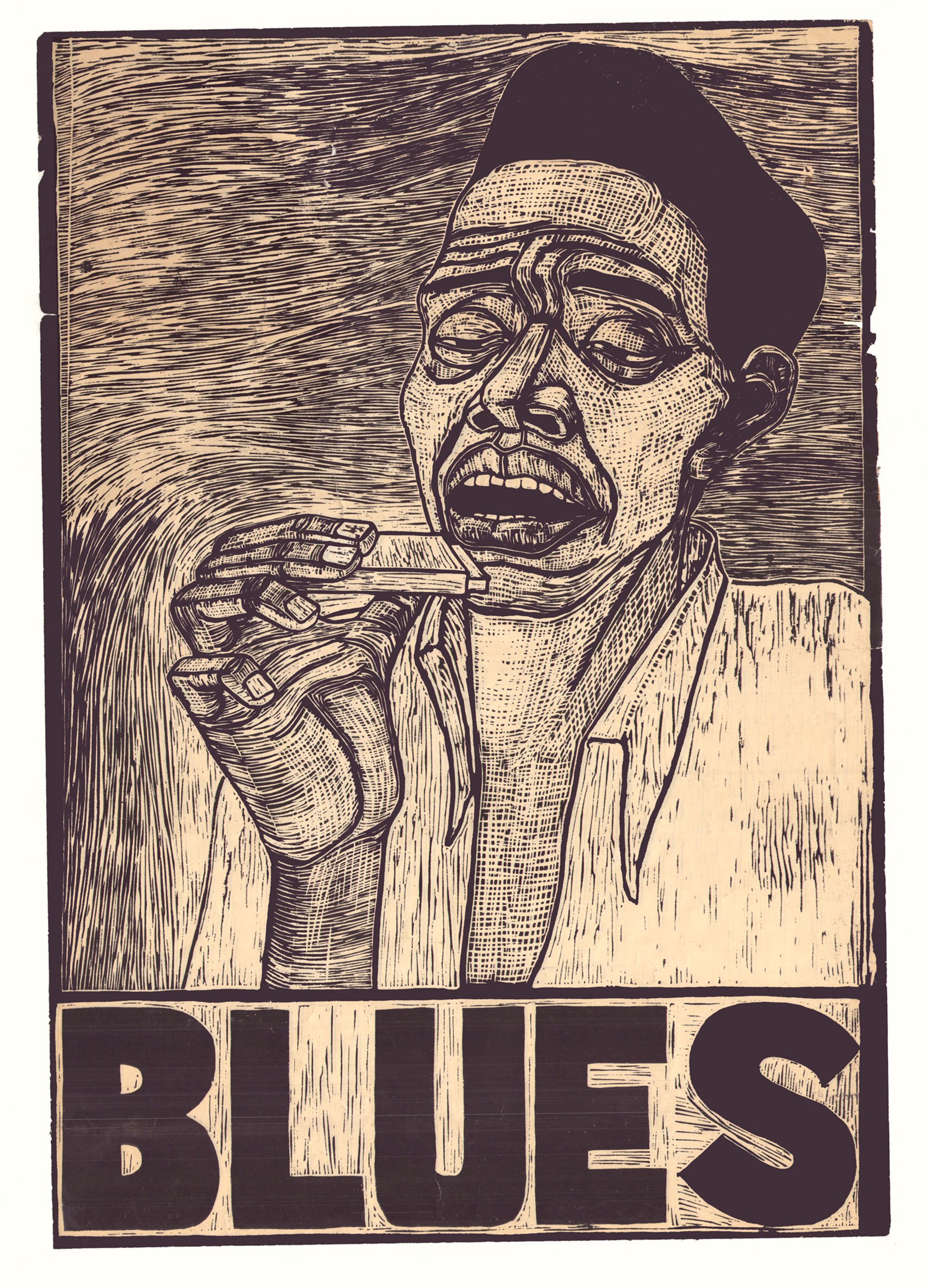 Kerry James Marshall's linocut print Blues (1982) © Kerry James Marshall