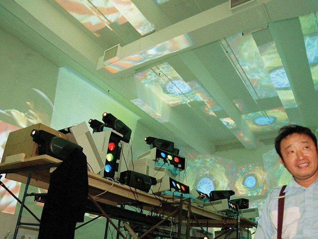 The final section covers Paik’s airport commissions, which were installed in 1990. One of these, WING, included almost 100 TVs lined up in rows with a propeller in the middle. The other, MIAMI, spelled out the name of the city using 74 monitors. In both works, the TVs played thousands of clips of the beach, palm trees, flamingos, boats, traffic, lava and some of Paik’s “electronic paintings”. “By 1998, both works had been removed from view,” says Voorhies, due to airport construction and water damage. However, he adds, discussions are under way to reinstall them at the airport.
