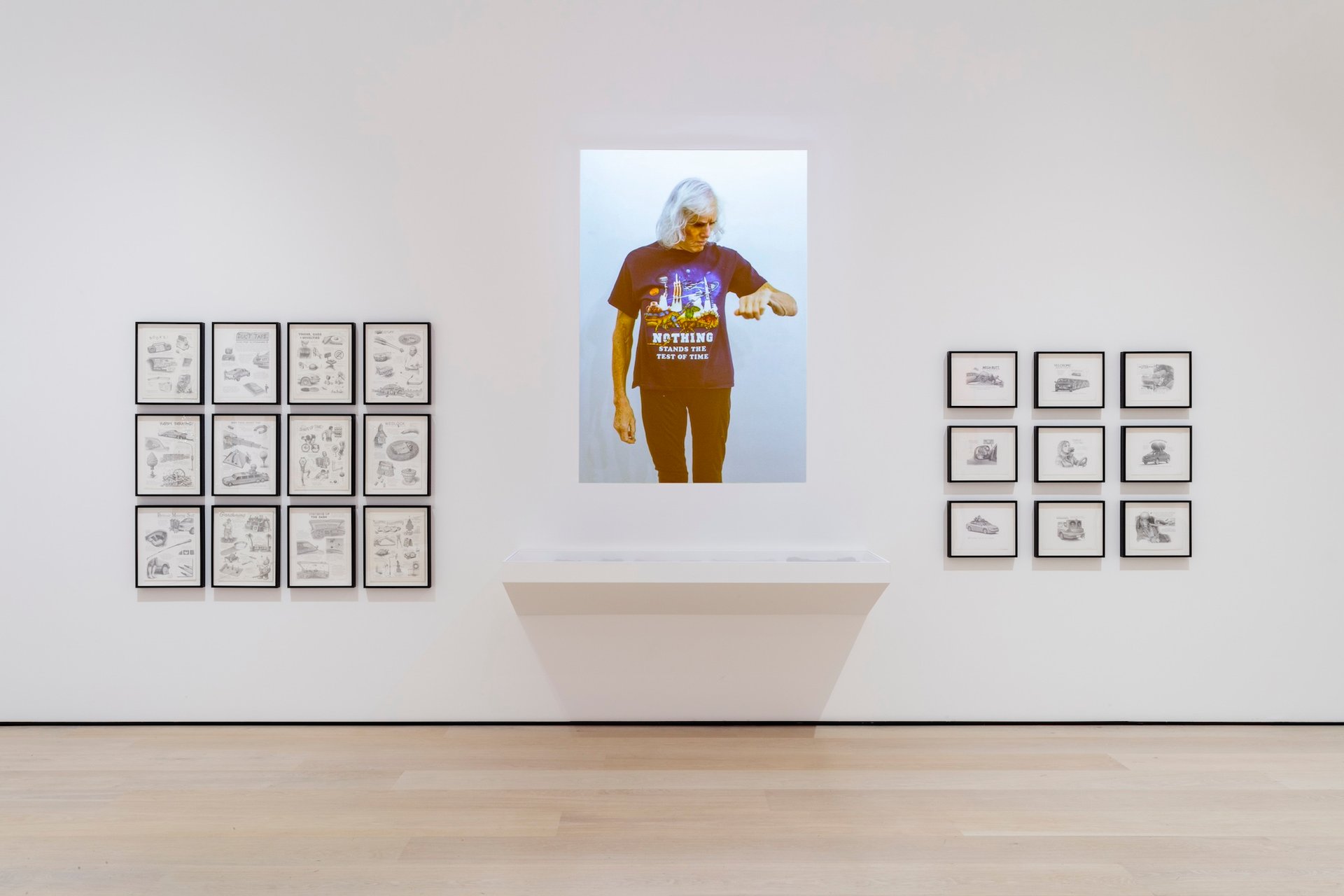 Garner, 81, has in the show a suite of drawings, and T-shirts, skewering—or “hacking”, as she likes to say—fixed notions of gender and identity, as well as consumer culture. She is particularly trenchant on the American obsession with cars as a form of transportation and self-expression. She says she has almost completely lost her vision due to glaucoma and hasn’t been able to visit the biennial. “It is ironic right now that I’m getting this attention for my work and I can’t directly participate. It’s an interesting sensation. My career is going in one direction, and my health is going in another,” she says.