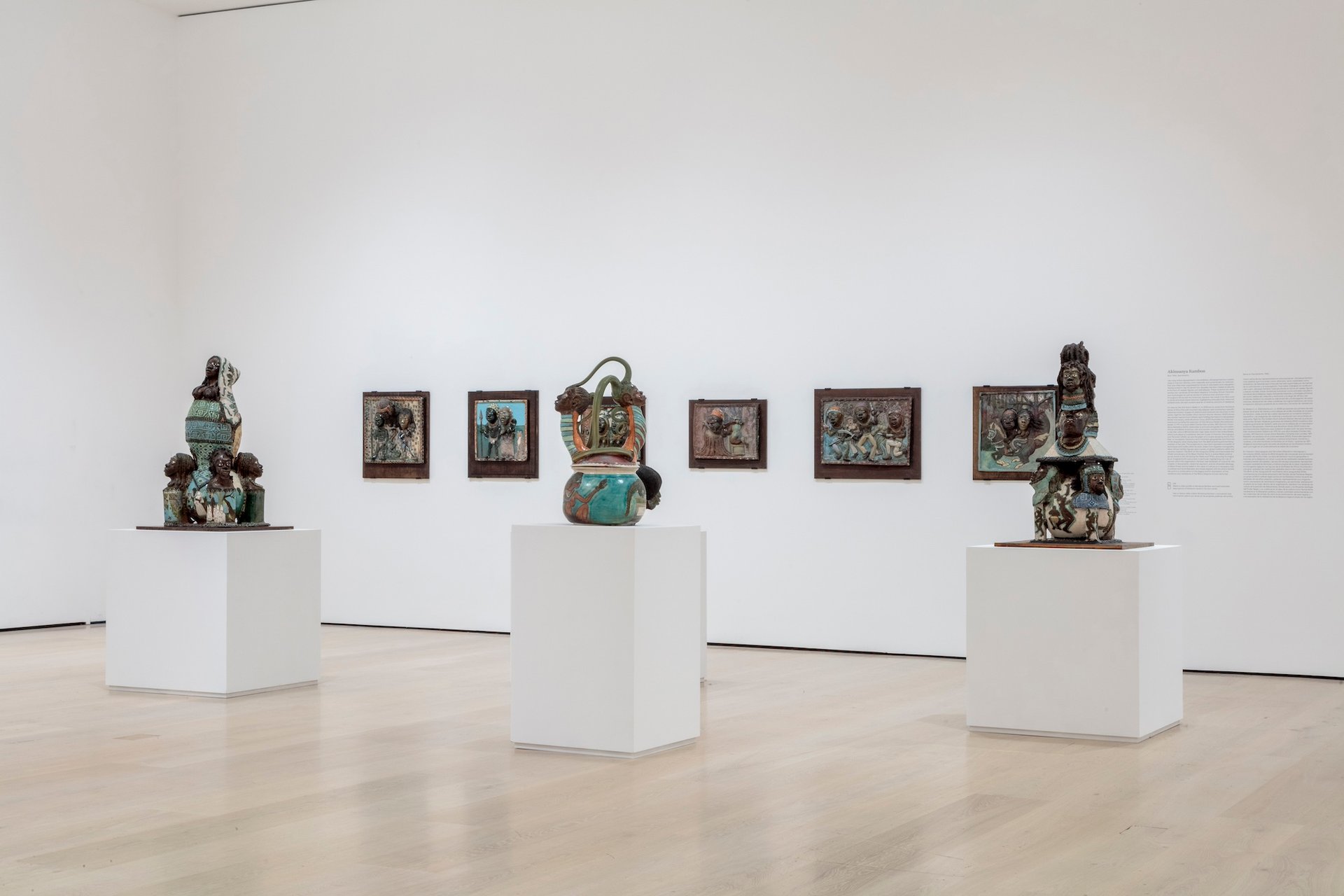 Their biennial, up until 31 December, is rich with hand-crafted sculpture, assemblage and other works incorporating an unusual amount of natural or organic materials. Kambon, 76, has contributed to the biennial a set of narrative ceramic sculptures and plaques exploring moments in the history of African colonisation and slavery. “Everybody has a different reason for doing art. I think art is a way of educating and uplifting humanity,” he says, talking about his early days as a “lieutenant of culture” for the Sacramento chapter of the Black Panthers and his history of holding free art classes for kids in Long Beach.