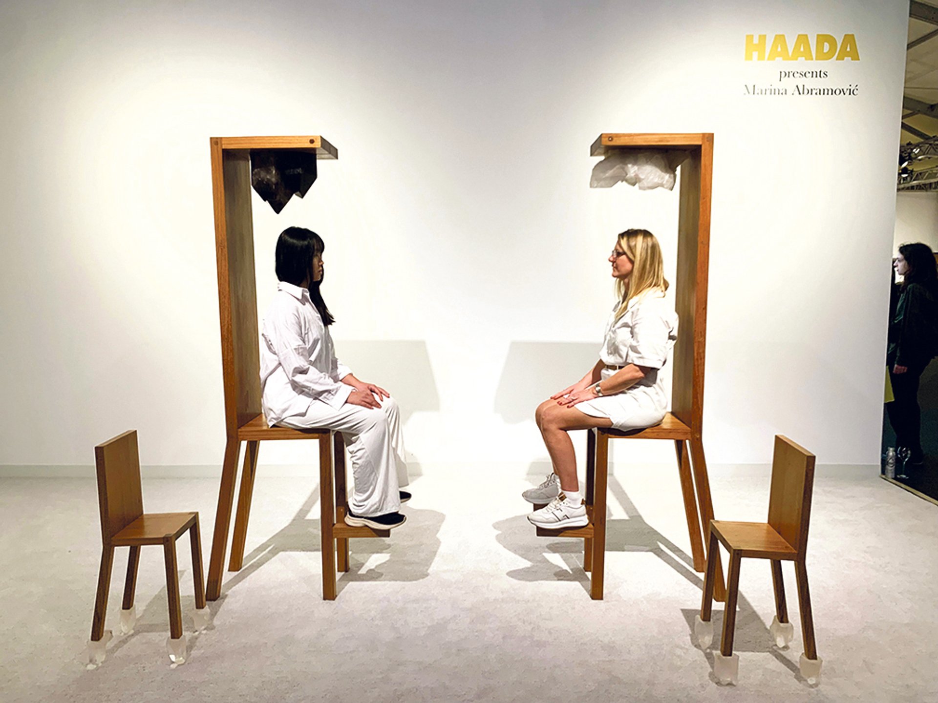 Don’t blink! Women in Marina Abramović-designed chairs recreate (roughly) the artist’s famous MoMA performance piece Courtesy of Haada Gallery