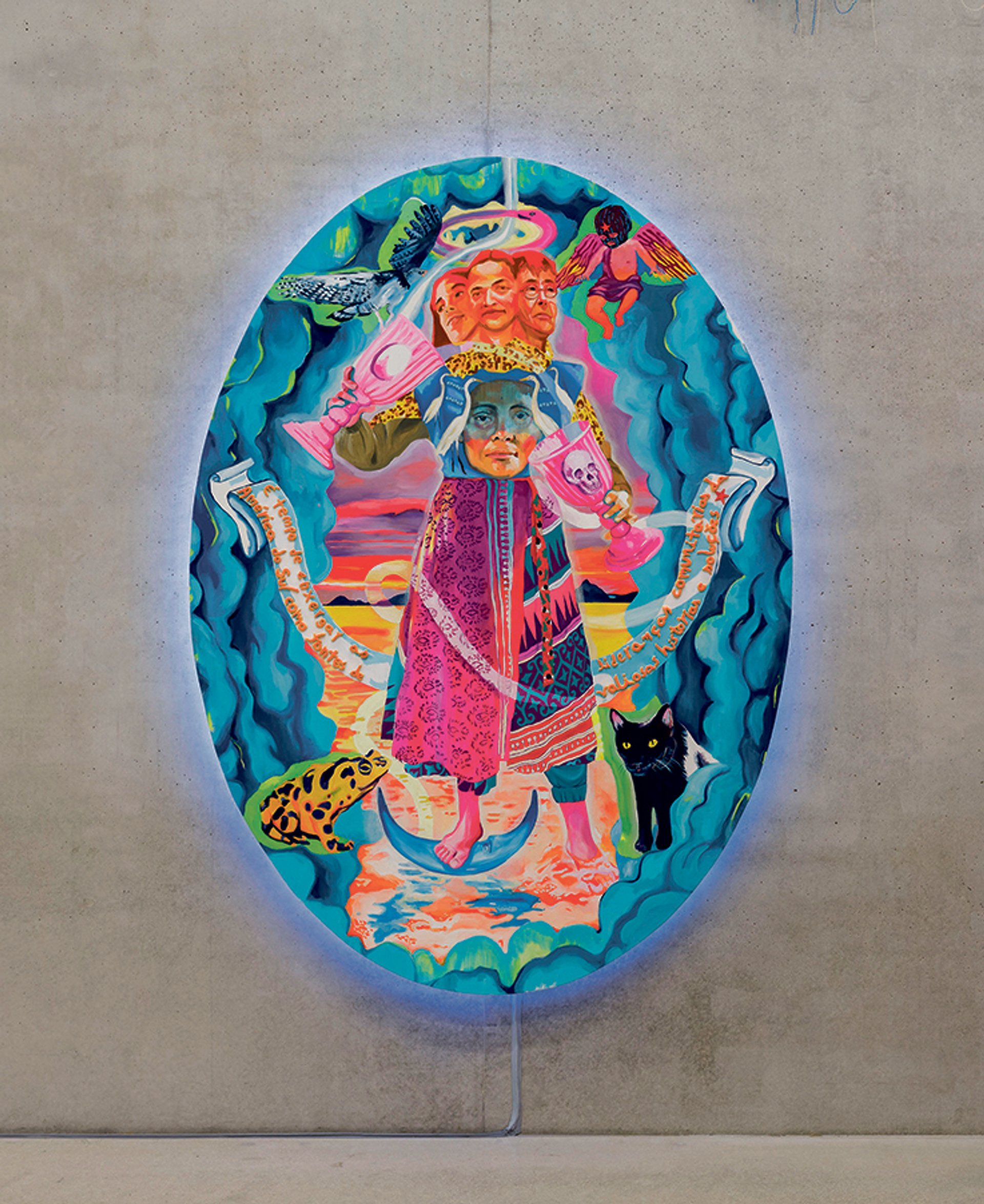 Your paintings often combine a wide range of references, from political posters to tarot iconography. How do you approach mixing these sources and picking the right one for a subject?