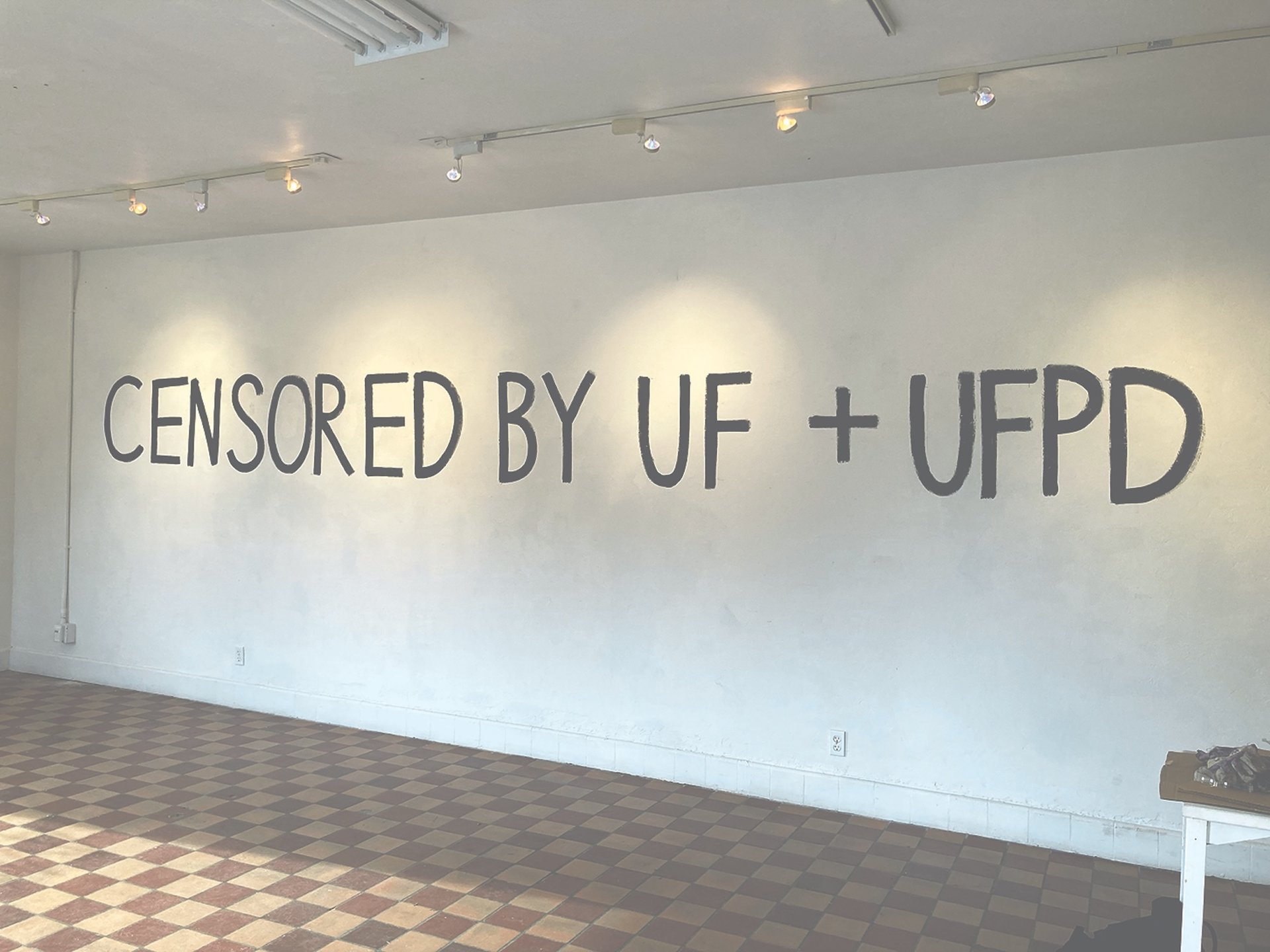 In March, several banners were suddenly taken down from just outside UF’s off-campus art gallery. They had prison abolition and anti-police messages written on them as part of the show Burn It Down: Communications of Resistance, a collaboration between members of Florida Prisoner Solidarity and UF art students. After the banners were removed at the behest of university administrators (a spokesperson for the college noted that they had been installed outside of the gallery without permission), rocks were thrown through the gallery’s windows.