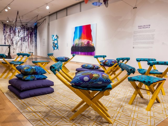 The largest museum show of his work opened in 2015 at the Geffen Contemporary at the Museum of Contemporary Art, Los Angeles. The show included Trinket whereby high-powered air from a series of fans caused the 51-star US flag to fray and fall apart over the course of the 14-week exhibition.