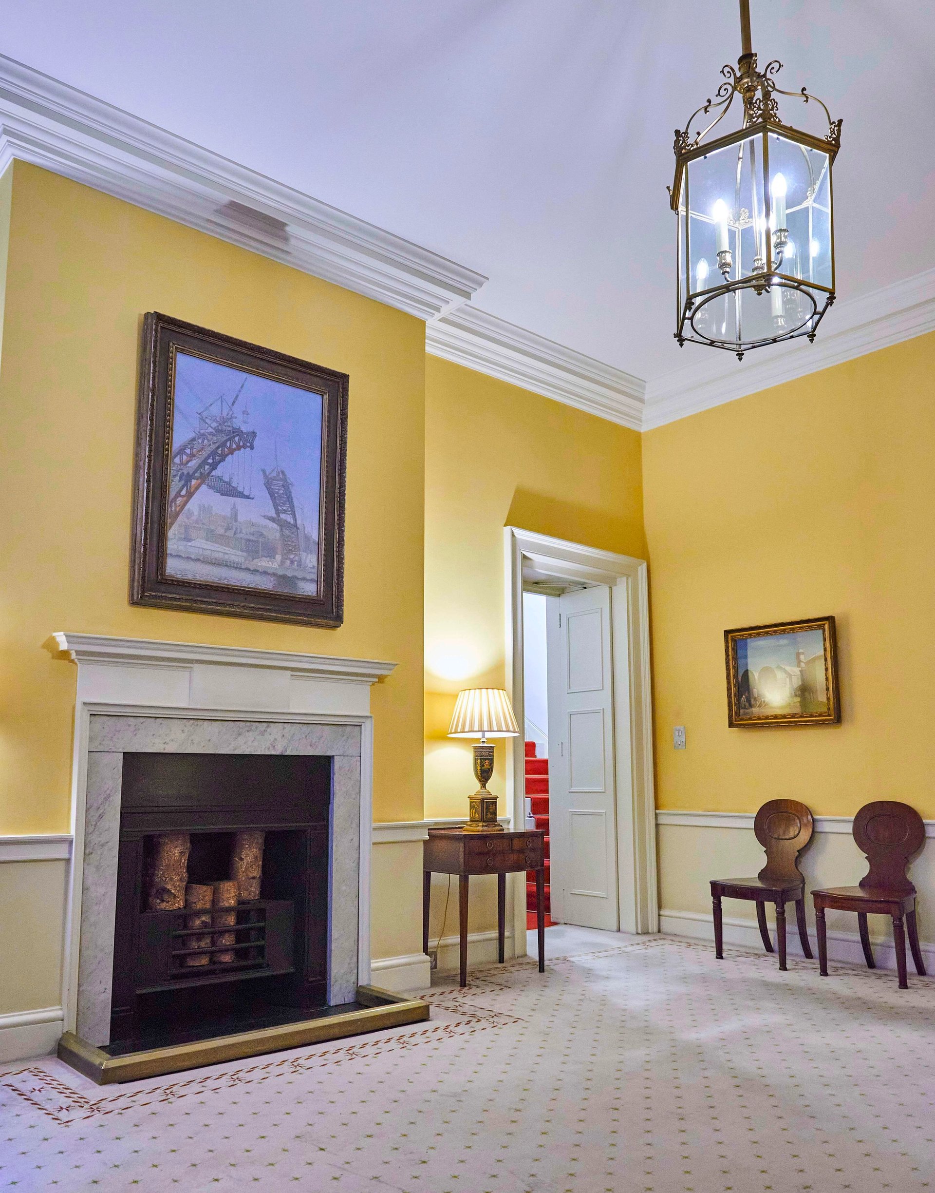 A room displaying Edward Dickey's The Building of the Tyne Bridge (1928)