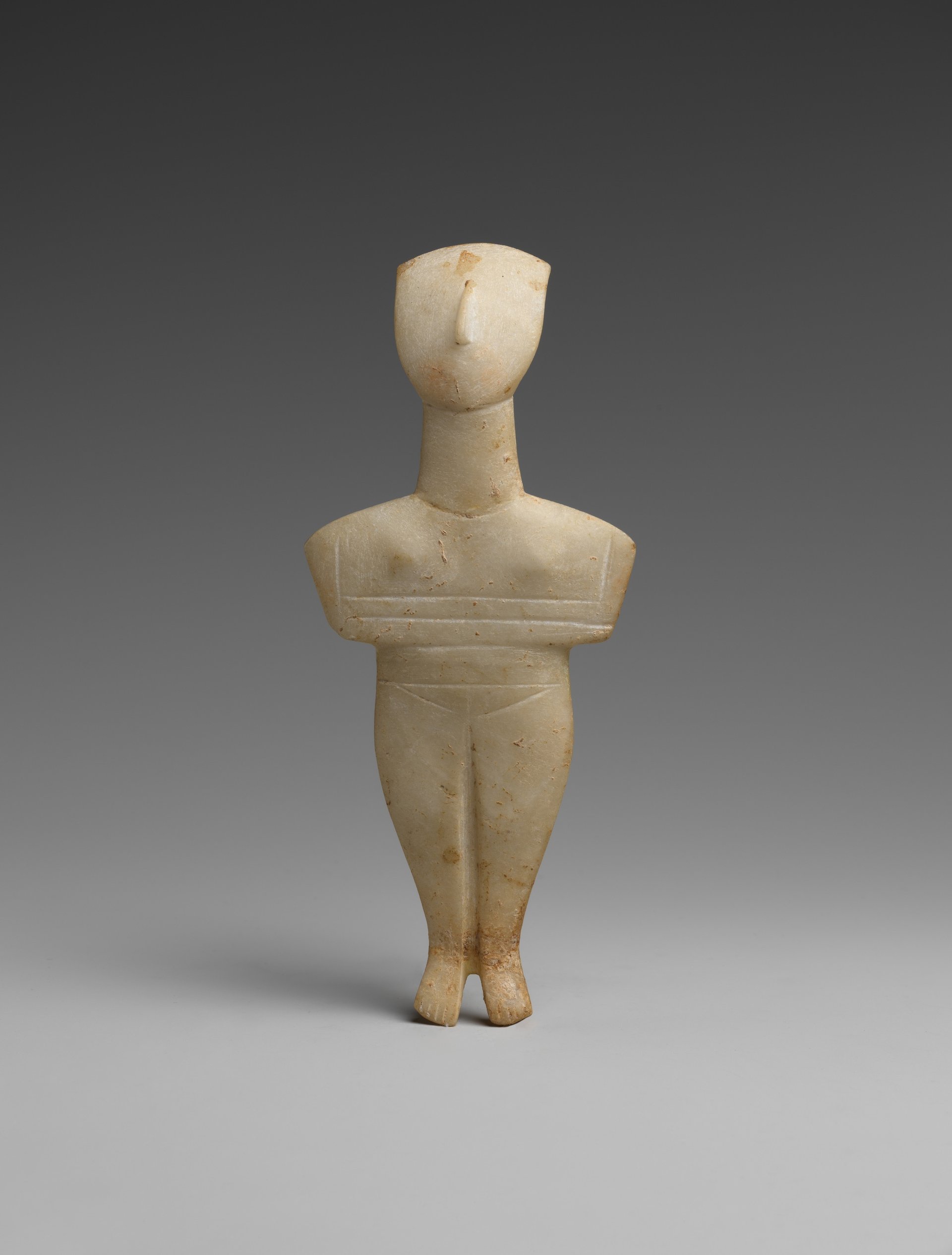 Marble female figure, Cycladic, 2400BCE/2300BCE-2200BCE Leonard N. Stern Collection, Loan from the Hellenic Republic, Ministry of Culture Image: © The Metropolitan Museum of Art, photo by Bruce Schwarz