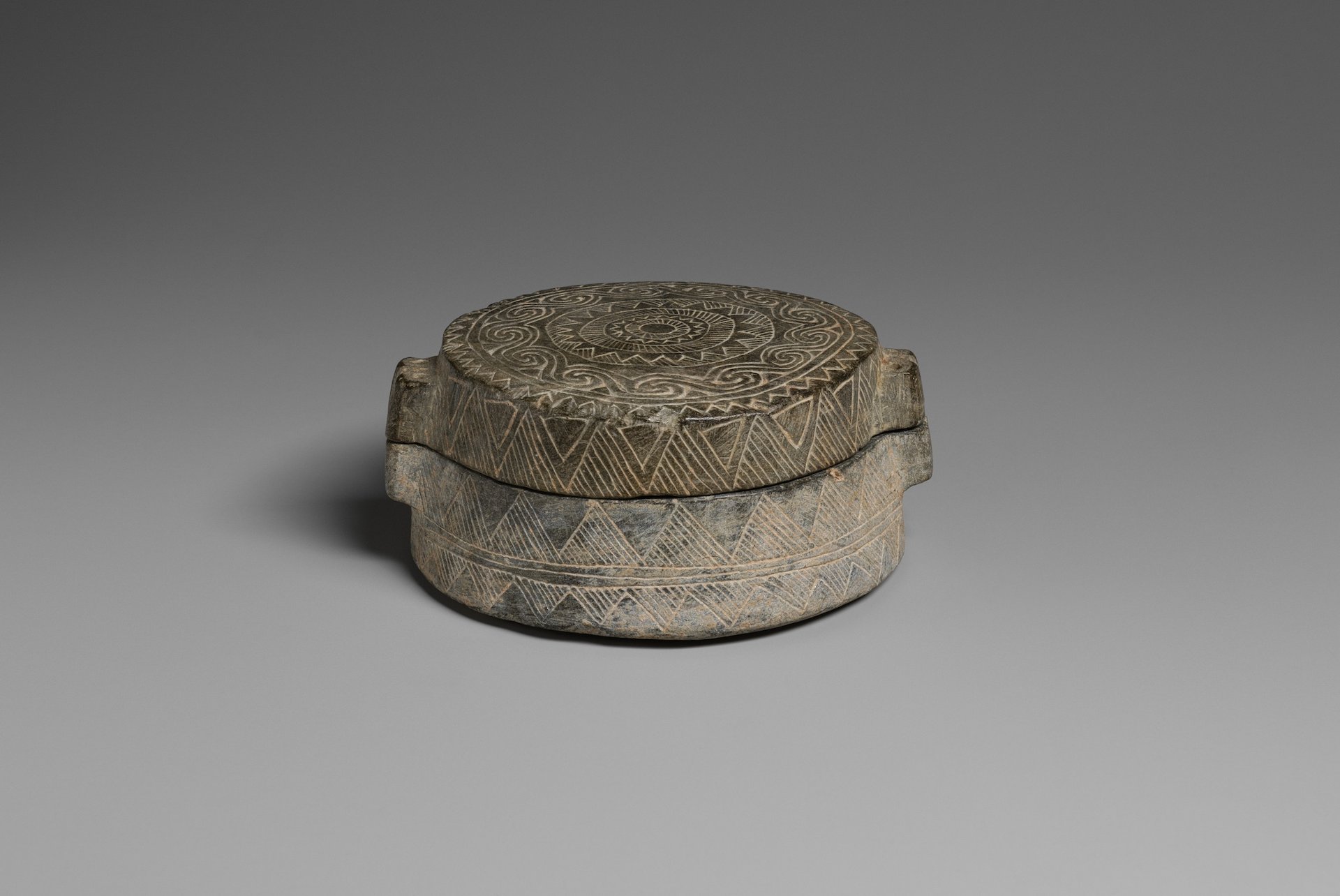 Steatite pyxis (box), Greek, 2700BCE–2400BCE/2300BCE Leonard N. Stern Collection, Loan from the Hellenic Republic, Ministry of Culture
