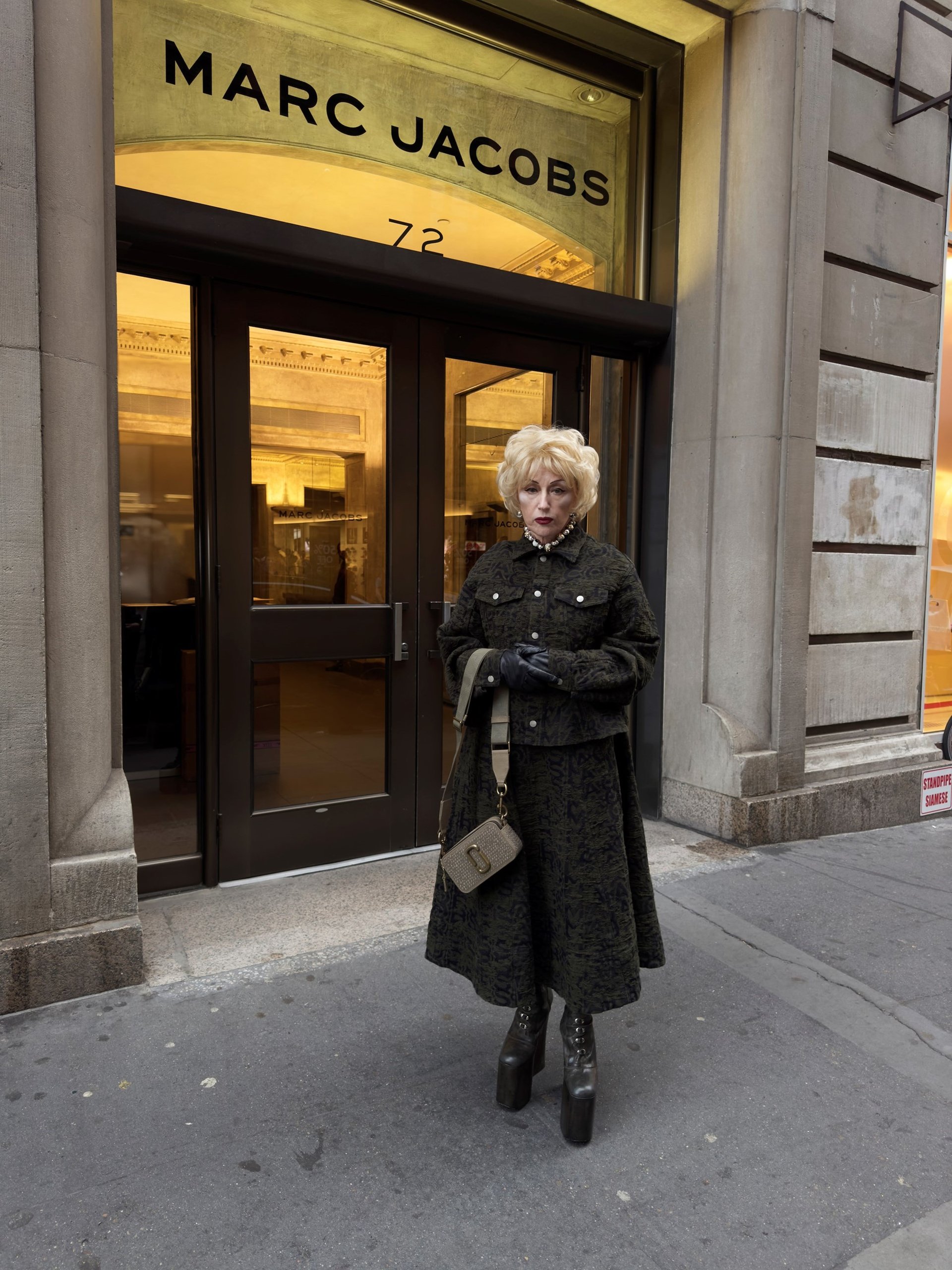The fabled photographer and legendary chameleon Cindy Sherman, pops up in two very different guises in the latest ad campaign for the Marc Jacobs label (spring/summer 2024 campaign). Sherman is seen sporting Jacobs’s Crystal Canvas Snapshot crossbody bag in the eye-catching photographs snapped by fellow photo giant, Juergen Teller. In one image, Sherman looks pristine in a blonde wig, tweed two-piece and a thumping pair of boots; in the other pic, she glares at the camera in a long dark wig, looking ever so slightly unkempt. Sherman’s post on social media shows both personas shifting uneasily in front of Jacobs HQ in New York, giving furtive glances at the camera (the Insta entry prompted a flood of comments analysing the fashion/art crossover including a gushy acknowledgment from Jacobs himself: “I love you so much. So grateful to you. Always.”). Sherman’s appearance coincides with a major show of works at Hauser & Wirth New York (until 16 March) featuring 30 new depictions of the artist at her grotesque best.