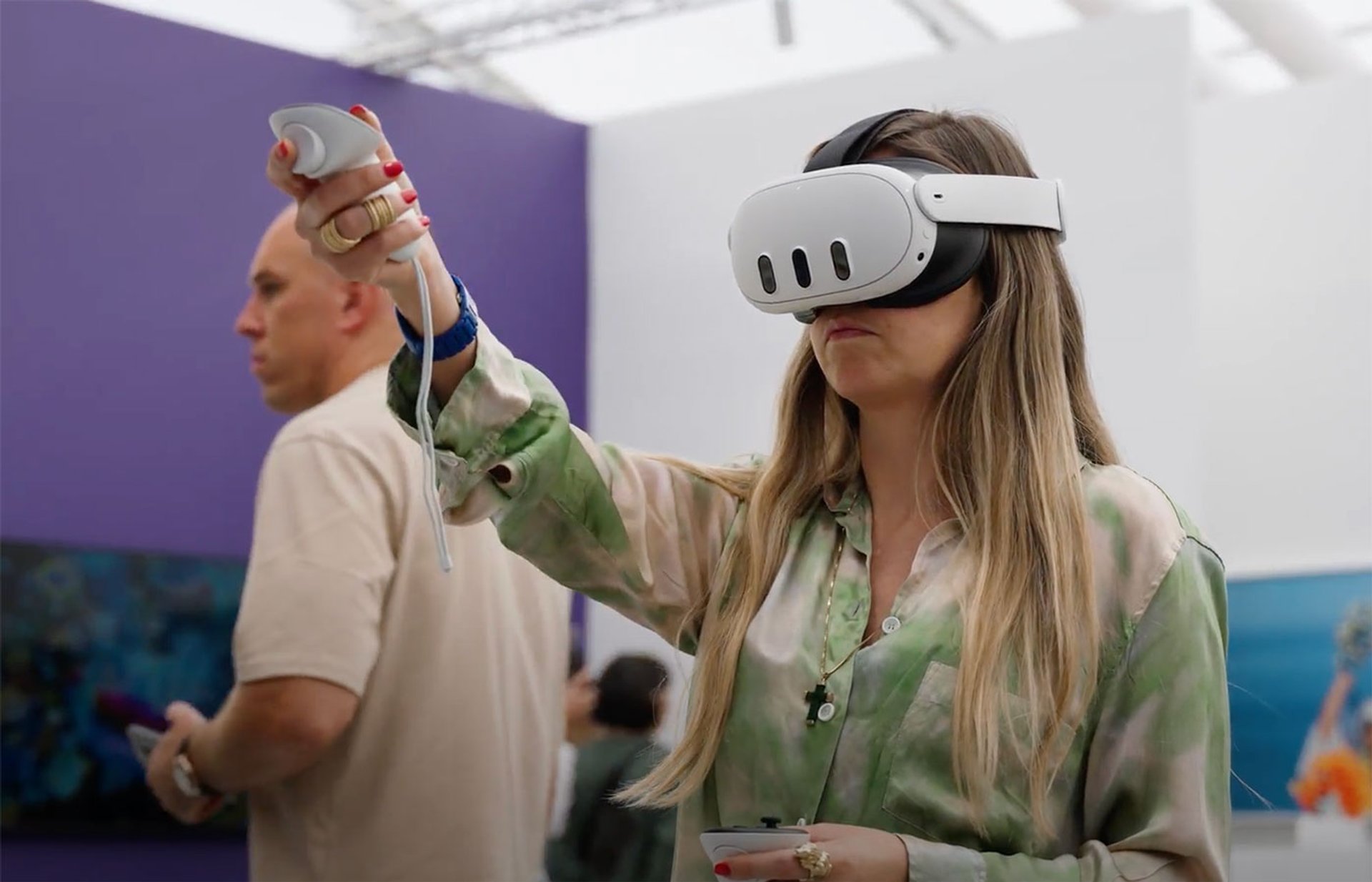 A user exploring a Vortic gallery space in a Meta Quest 3 mixed reality headset Courtesy Vortic