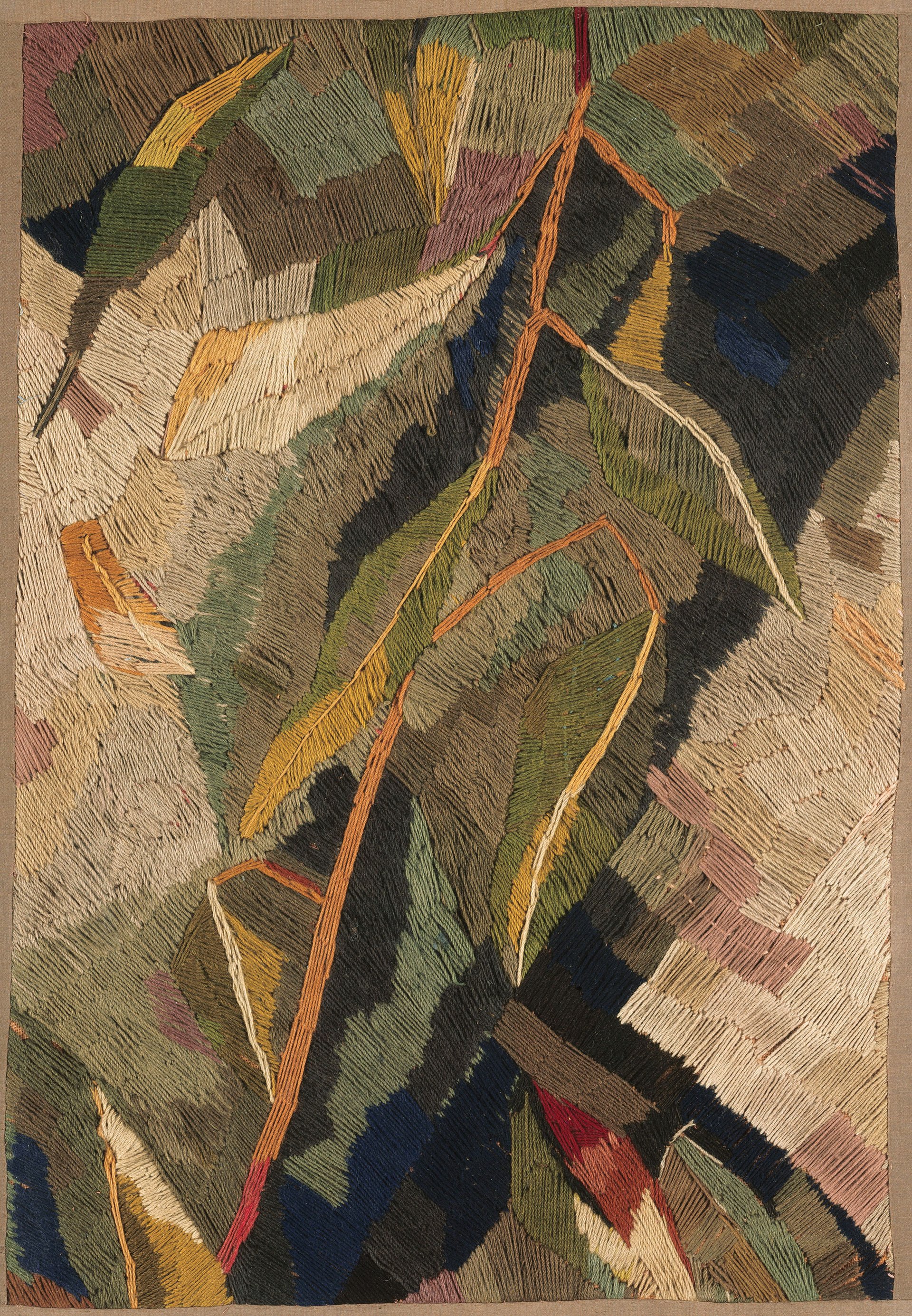 Sonia Delaunay's Broderie de feuillages (1909) Centre Pompidou; Musée national d’art issue; Paris; gift of Sonia and Charles Delaunay; 1964; AM 1142 OA. Digital Image; © CNAC/MNAM; Dist. RMN-Grand Palais / Art Resource; NY. © Pracusa
