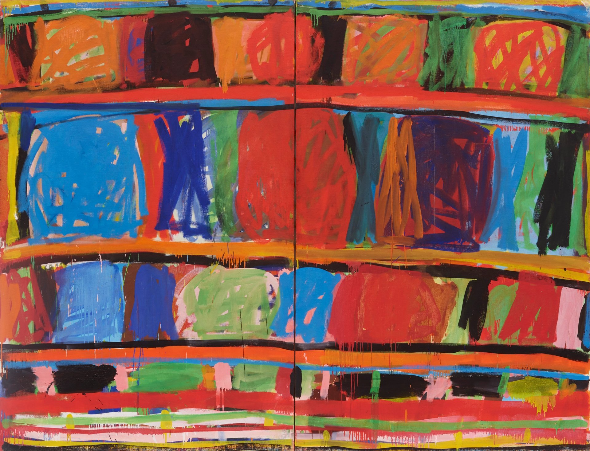 Rigorously structured yet full of improvisation and unexpected incident, his paintings are both arresting and slow-burning: they grab you with their bold hues and hold you with their complex harmonies and dissonances, their sense of constant movement. He is particularly known for his square-format paintings of the past two decades but his career has been a lifelong search for a distinctive form of painting—one that, as he has said, is defiantly abstract yet contains “the complexity of the world”.