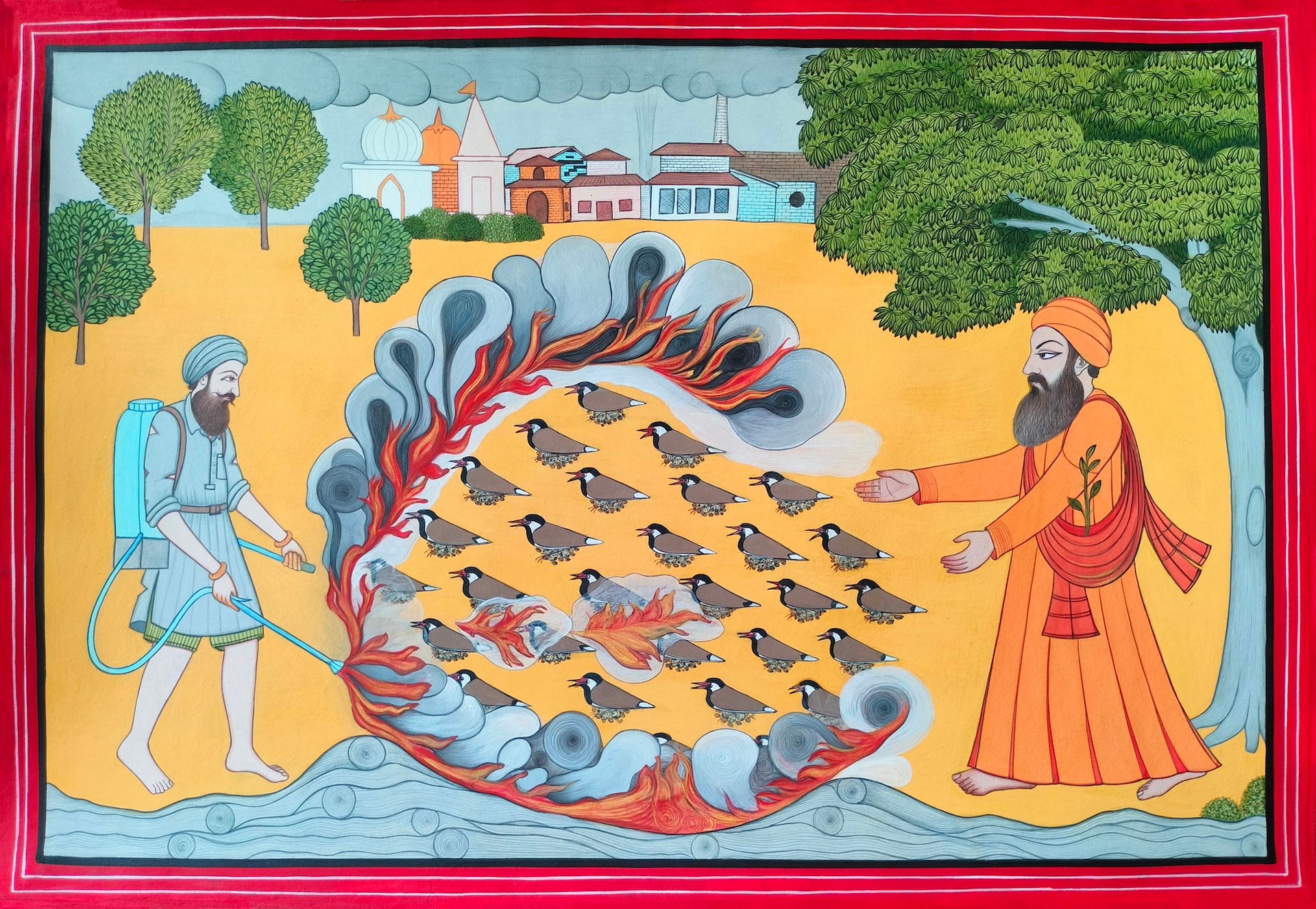 Avtar Singh, Mata Dharat Mahat, Guru Nanak in Modern Fields, 2022 Courtesy of the artist and the Sidhu Family Collection