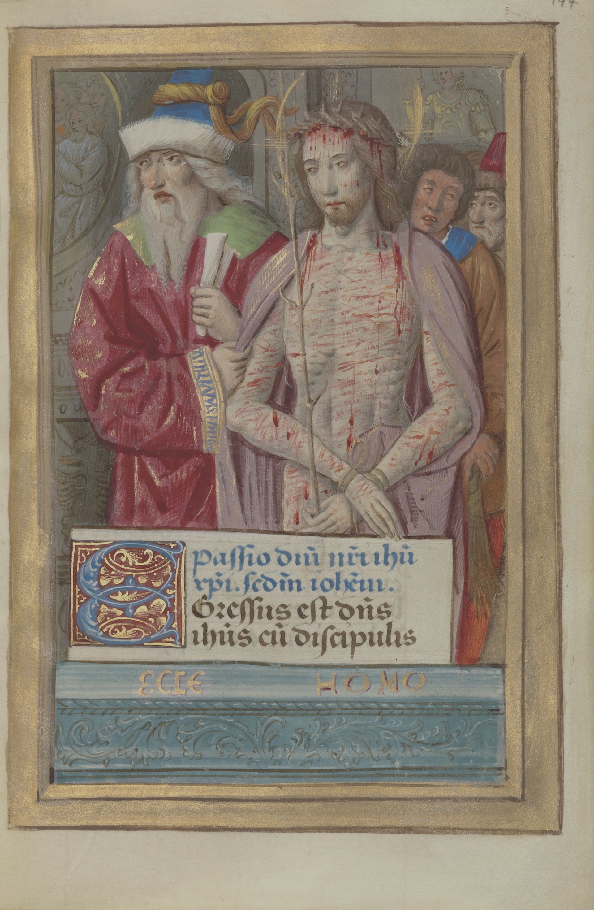 Jean Pichore, Ecce Homo, from Poncher Hours, about 1500. Tempera colours, ink and gold on parchment Getty Museum