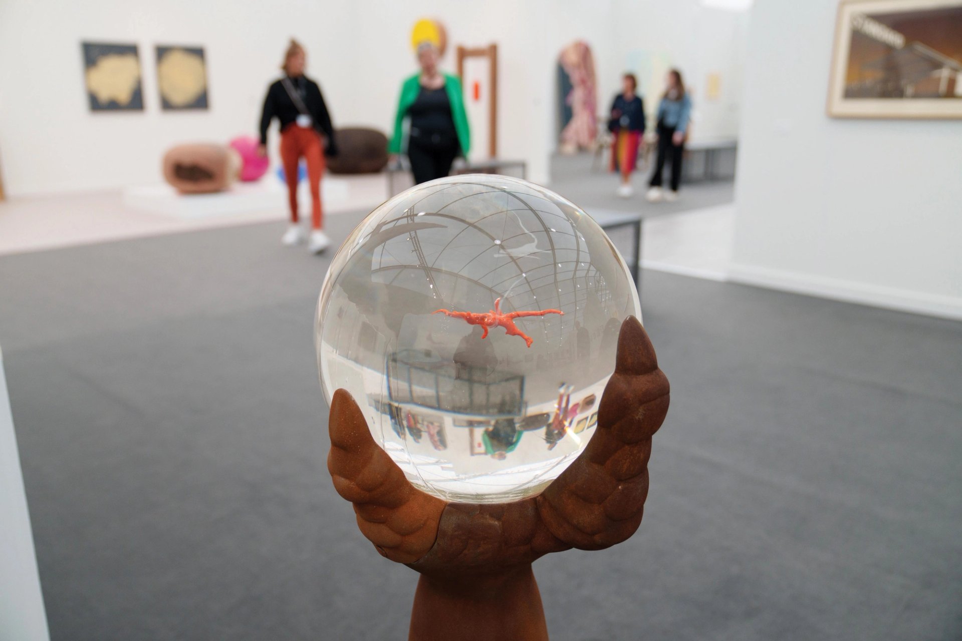 With Amphisbaena, the Los Angeles-based artist is reimagining a symbol from Chinese mythology—the ball and claw, which represents knowledge—except this claw holds a piece of bright-red coral inside a glass ball. “When Europeans first saw coral, they thought it was this precious thing when in fact it was readily available in the sea,” explains Hannah Hoffman director Adrianna Cole. The sculpture is not so available; it sold during the VIP preview for $35,000.