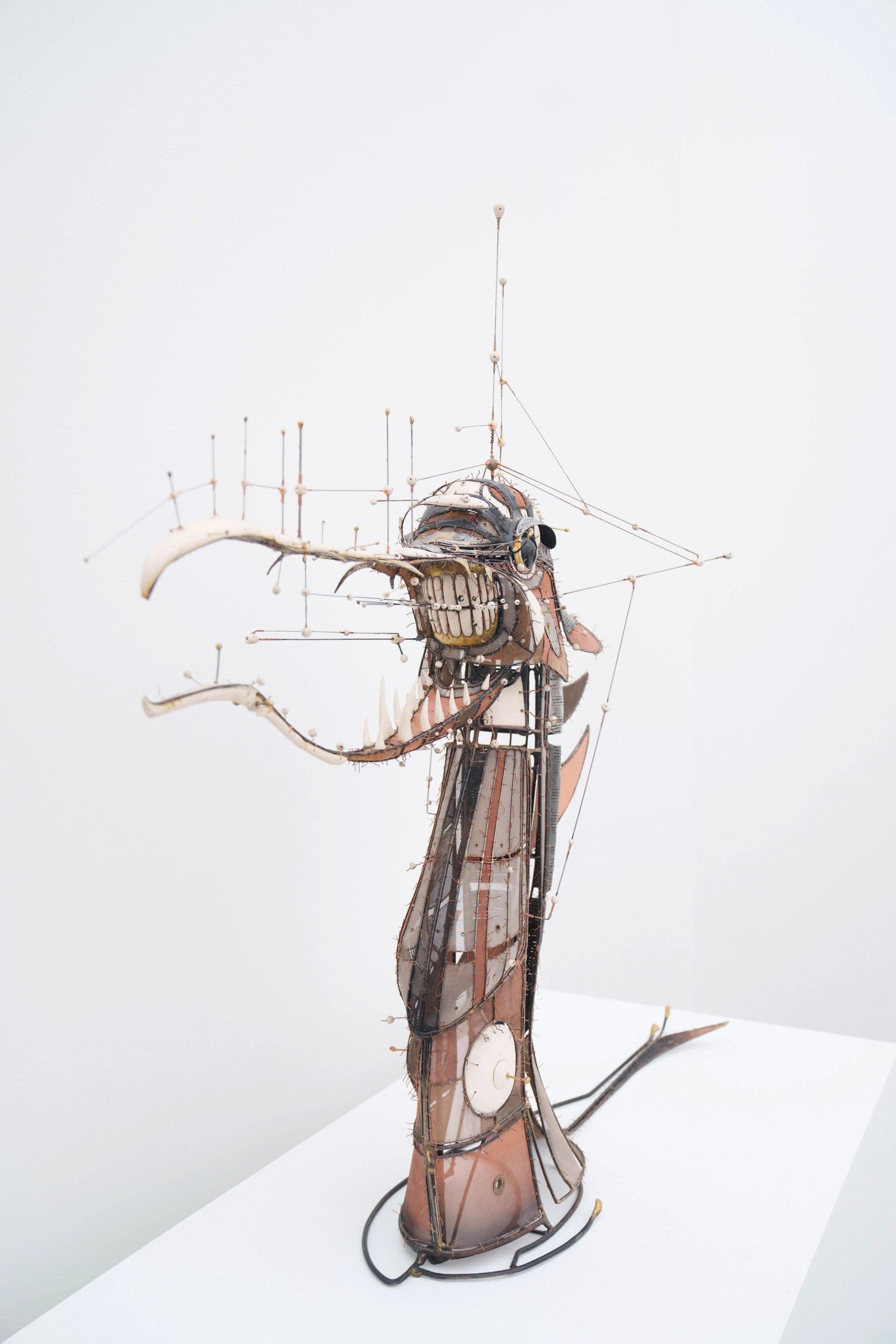 Visitors familiar with Bontecou’s wall-mounted abstract sculptures may be surprised to spy this cyberpunk bird made of steel, wire and porcelain on Marc Selwyn’s stand. “It’s more of a hybrid of a bird, a dragon and a dinosaur,” Selwyn says. “She was always interested in exotic and mystical animals.” Collectors were interested, too, it seems; a buyer swooped in for the sculpture during the fair’s VIP preview, capturing the work for an undisclosed price.