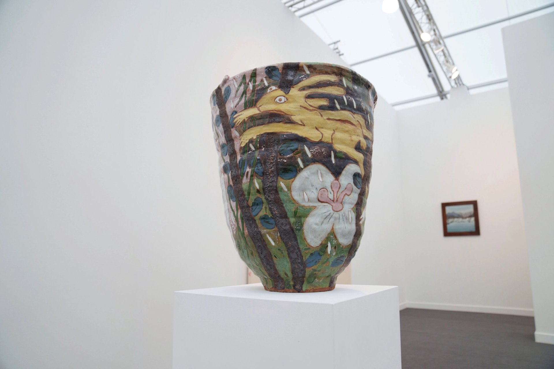 The Los Angeles-based artist is fond of depicting animals and nature scenes on her sculptural creations. Massimodecarlo’s stand features two of Karin Gulbran’s larger works: this giant vase with a couple of wide-eyed boars and a jumping rabbit ($28,000), and a floor lamp populated by a lion, snake and snail. Both works have already sold; the gallery declined to provide any specifics on the buyers but did confirm that they were bought by different people.