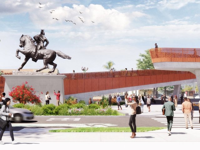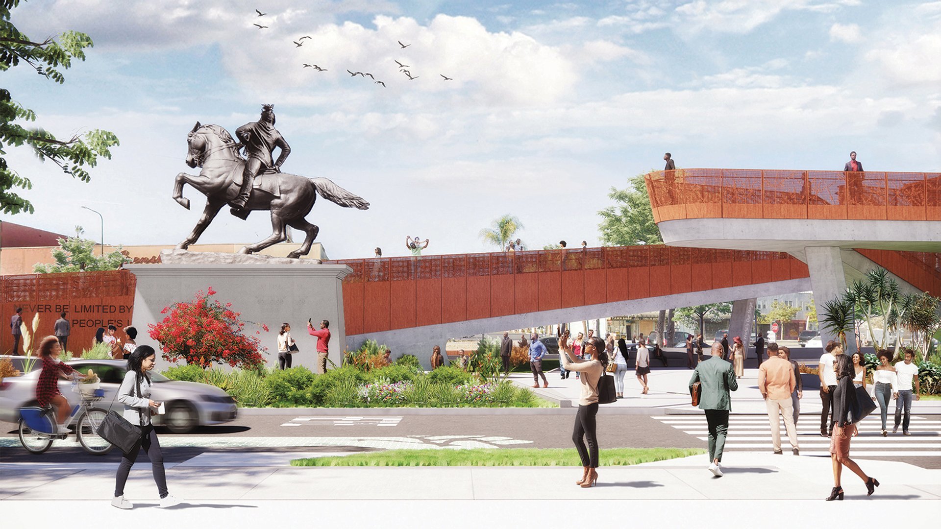 Rendering of Kehinde Wiley’s sculpture, Sankofa Park Courtesy of Destination Crenshaw