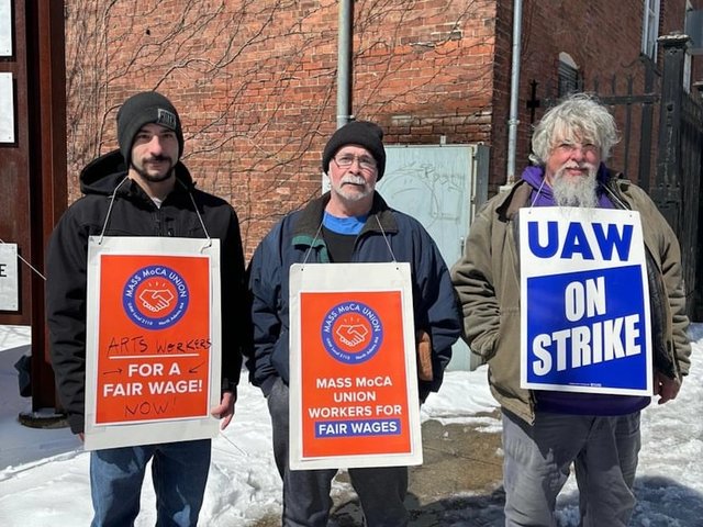 In August of 2022, workers at Mass MoCA went on a one-day strike amid drawn-out negotiations with the museum’s leadership. The one-day action led to an agreement on a first contract for workers in the union, who had organised in 2021. The Mass Moca union, which was first formed in 2021, is part of UAW Local 2110, which represents workers at many museums and cultural institutions across the northeast United States including the Museum of Modern Art and Whitney Museum of American Art in New York City and the Museum of Fine Arts in Boston.