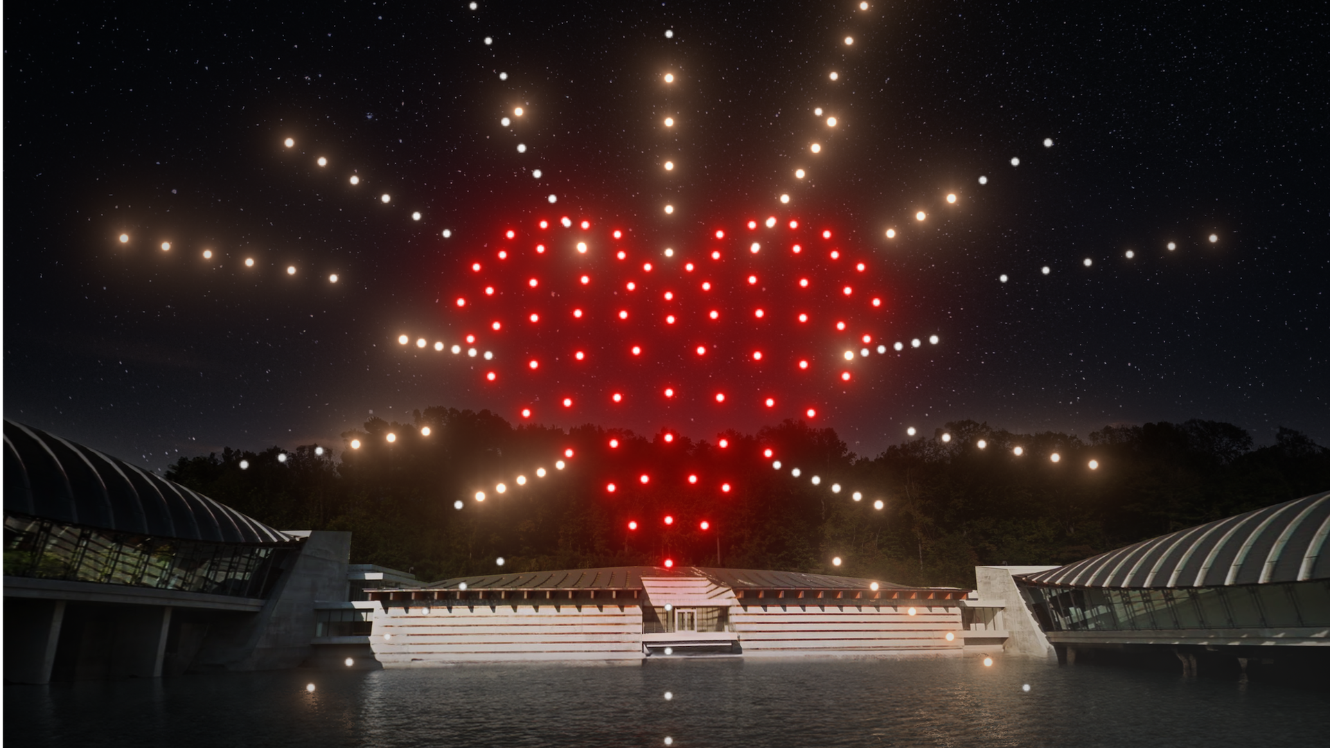A rendering of the drone choreography that will accompany a new composition by Jewel above the Crystal Bridges Museum of American Art Courtesy Crystal Bridges Museum of American Art, Bentonville, Arkansas