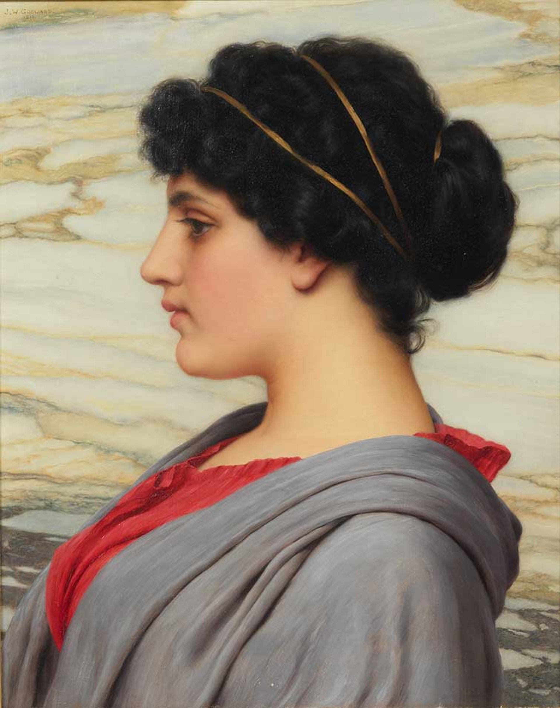 The English painter John William Godward was famous for his Neo-Classical and Pre-Raphaelite depictions of Apollonian beauty between the 19th and 20th centuries. A protégé of the Dutch painter Lawrence Alma-Tadema, Godward showed his works at London’s Royal Academy from 1887. He was also a passionate collector, and his studio in London’s Fulham Road was filled with vintage statues, columns, fabrics and vases that helped inform the references to antiquity in his paintings.