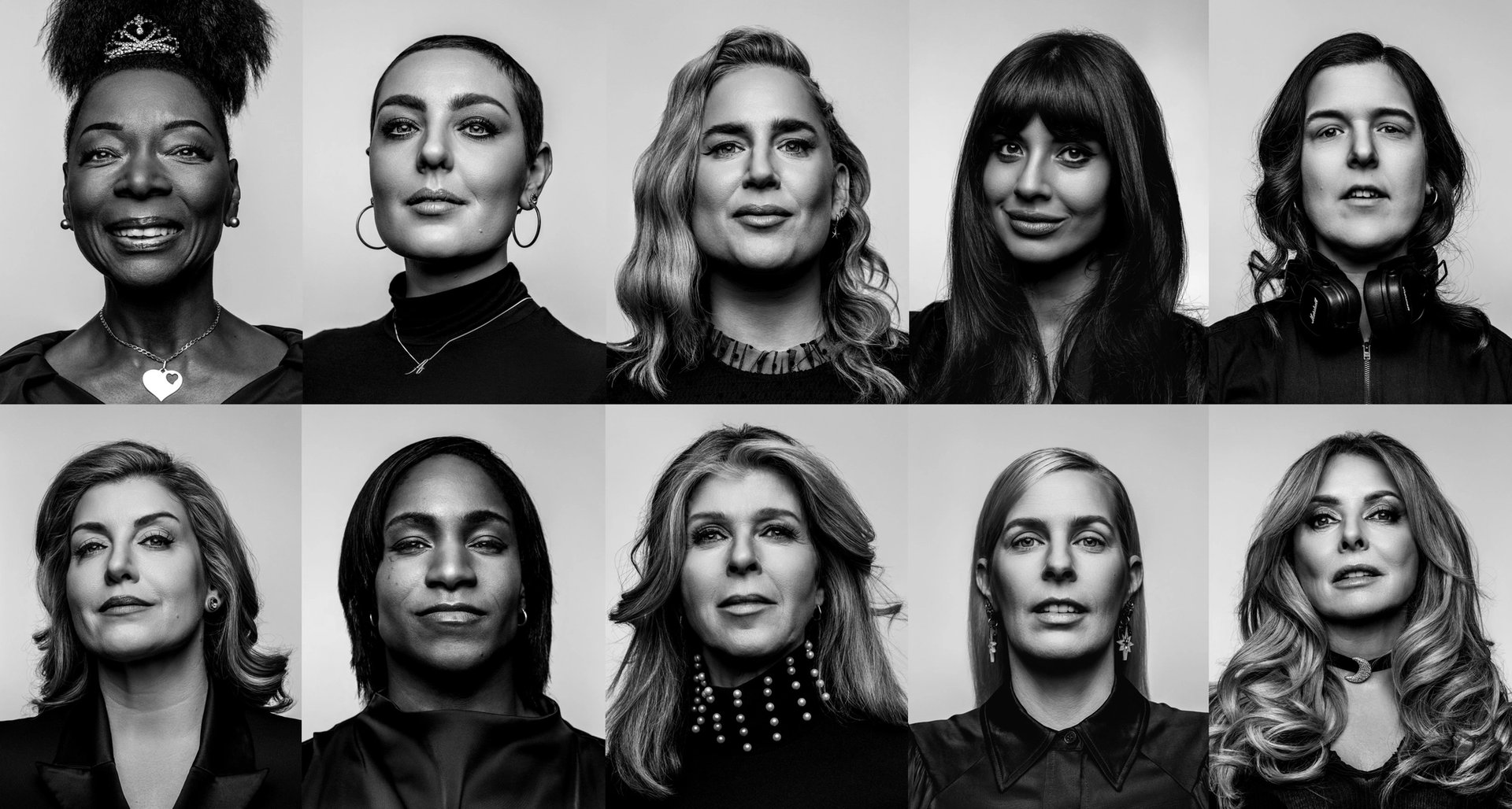 Top row (left to right): Floella Benjamin, Jameela Jamil, Anna Whitehouse, Amy Dowden, Carol Vorderman. Bottom row (left to right): Rosie Jones, Penny Mordaunt, Sara Pascoe, Maggie Alphonsi, Kate Garraway Image: © Sane Seven