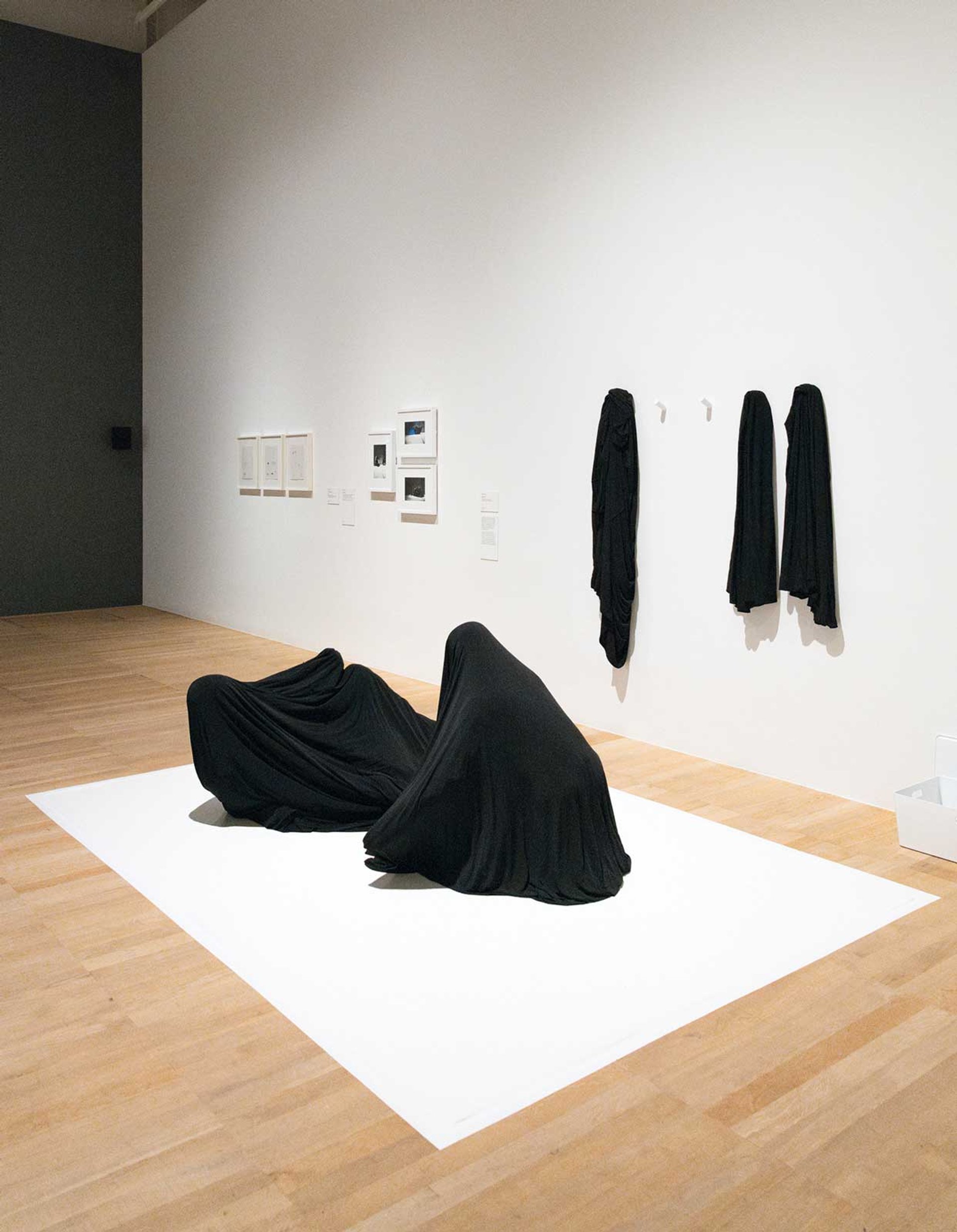 Ono's performance work Bag Piece (1964), in which members of the public climb inside a cloth bag, in the Tate Modern exhibition