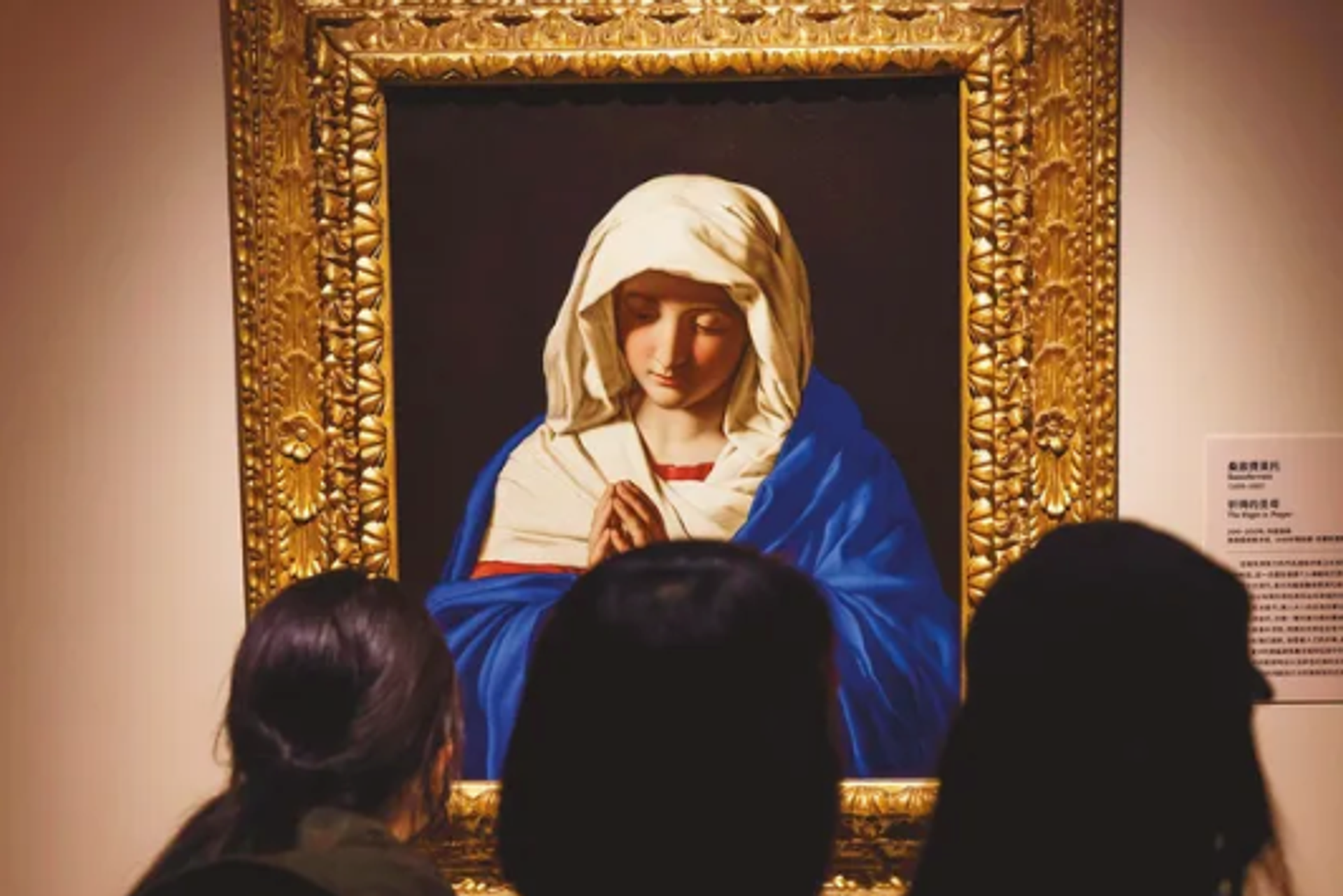 Visitors at the Shanghai Museum admire Sassoferrato’s The Virgin in Prayer (1640-50) at the record-breaking exhibition Botticelli to Van Gogh: Masterpieces from the National Gallery, London