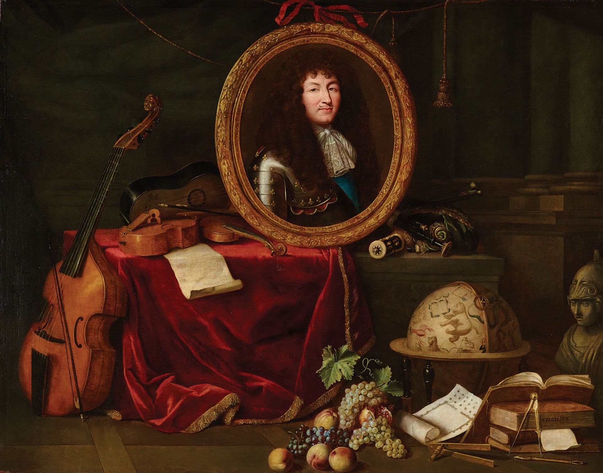 Portrait of Louis XIV surrounded by attributes of the arts and sciences (around 1672) by J. Garnier © Château de Versailles, Dist. RMN © C. Fouin
