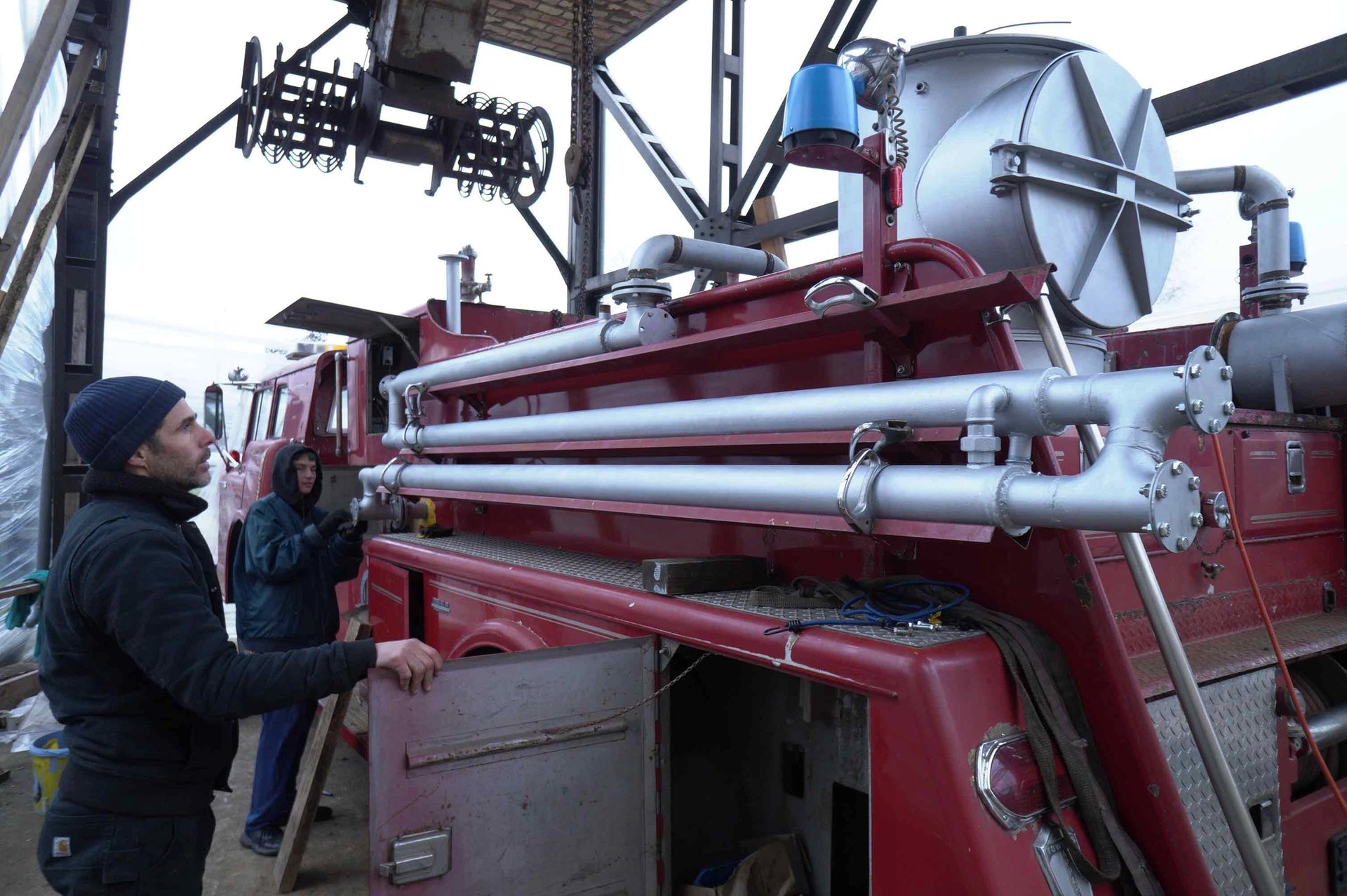 E-Werk's in-house transport system takes the form of an American fire engine converted to run off wood gas