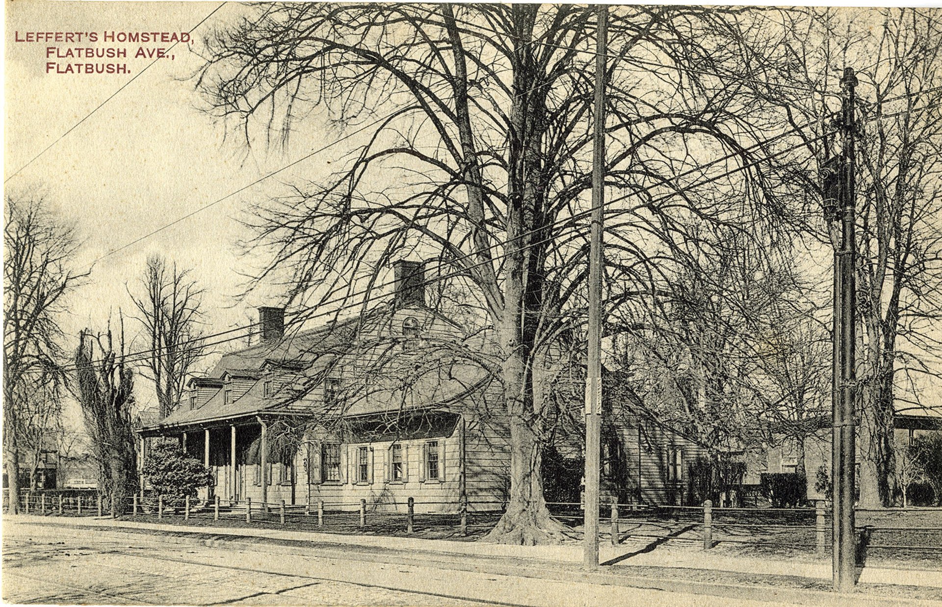 A postcard (around 1900) of Lefferts Homestead at 563 Flatbush Avenue, before it was moved to Prospect Park in 1918 © Prospect Park Archives/Bob Levine Collection