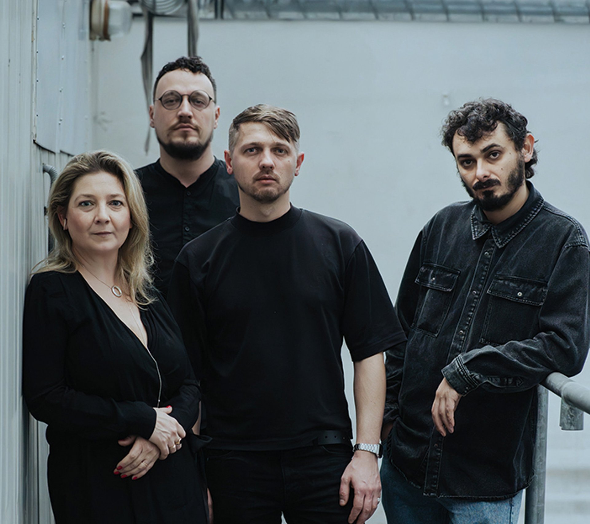 Curator Marta Czyż with Open Group members Yuriy Biley, Pavlo Kovach and Anton Varga Piotr Czyż