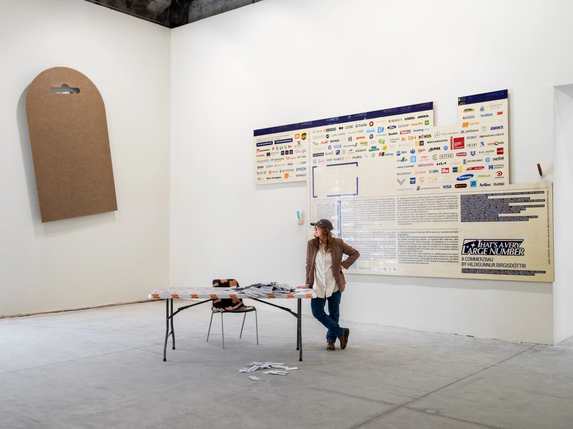 Usually, only two or three sponsors get such a coveted spot, but Birgisdóttir’s has listed the logos of every company that made the project possible, including delivery services (Fedex, UPS), airlines (Easyjet, Icelandair), computer software (Trello, Adobe, Google), stationary (Scotch, Post-It), communication apps (Zoom, Microsoft Teams), the PR company (Sutton), even the snacks she ate (Twix) and cigarettes she smokes (Camel).