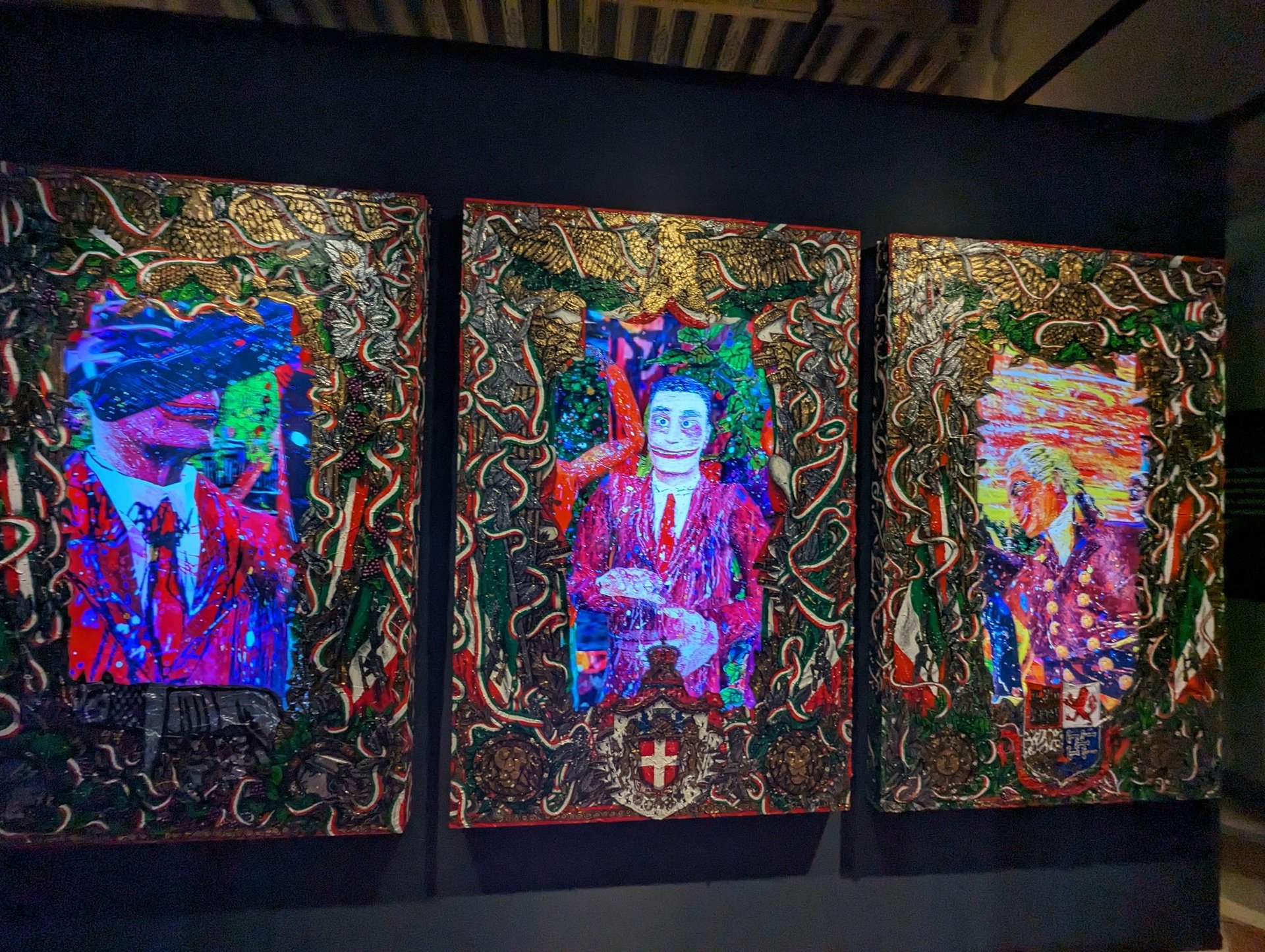 Donald Trump, Elon Musk and Kim Kardashian—probably some of the people you least would like to get stuck on a boat with. But the Italian-born, New York-based artist Federico Solmi has welcomed them all aboard his “ship of fools”. They appear in lurid video works, jerking back and forth like crazed marionettes. They also spring to life as ceramic heads, a hologram and a VR work. Other paintings strip back the characters’ skin to reveal the polygons that make the digital models.