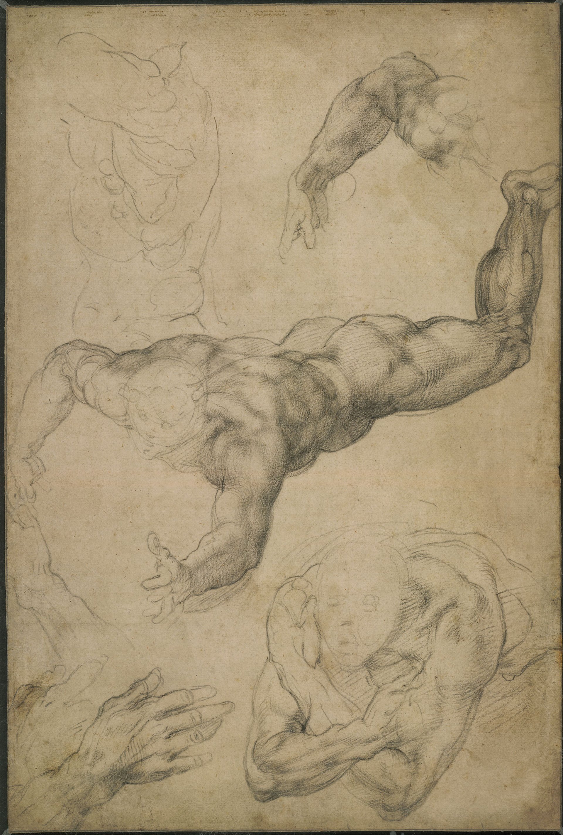 Michelangelo's Study of an angel and other figures for the Last Judgement (around 1534-36) © The Trustees of the British Museum