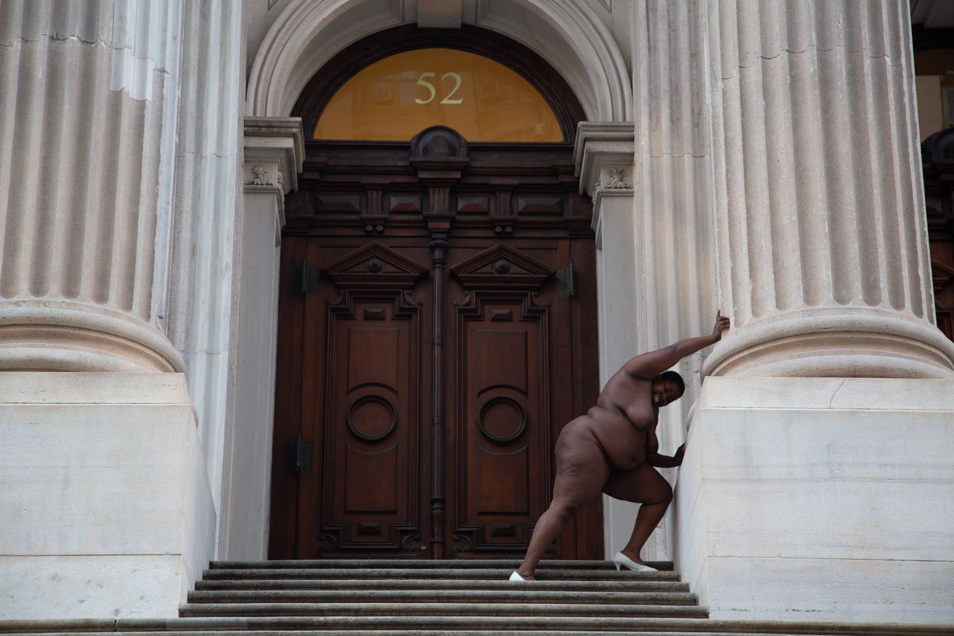 Nona Faustine, They Tagged the Land with Trophies and Institutions from Their Rapes and Conquests, Tweed Courthouse, NYC, 2013. Courtesy of the artist and Higher Pictures. © Nona Faustine