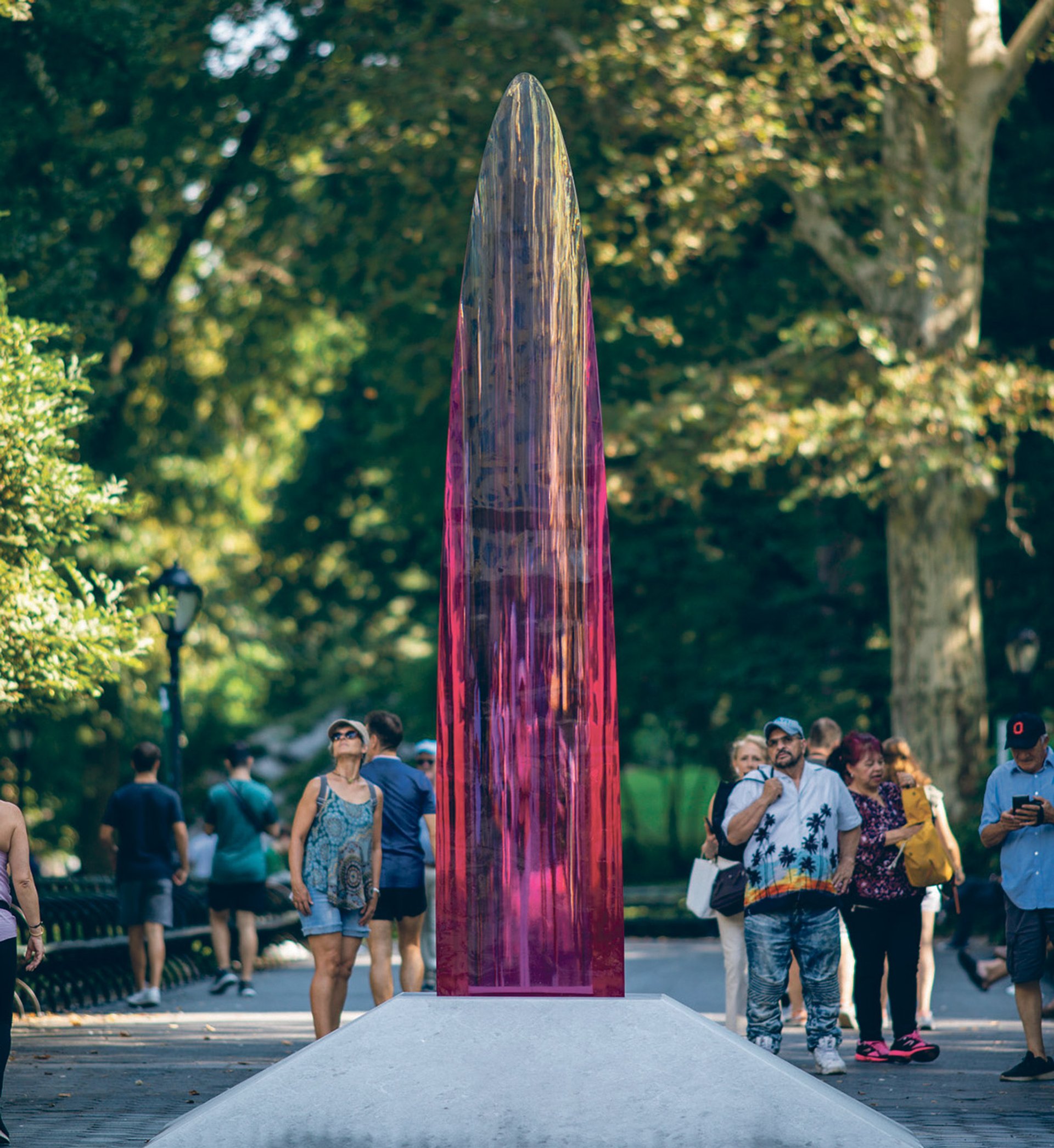 Commissioned by Public Art Fund, Parabolic Light (2023), in Central Park’s Doris C. Freedman Plaza, is Fred Eversley’s first outdoors cast-resin work.