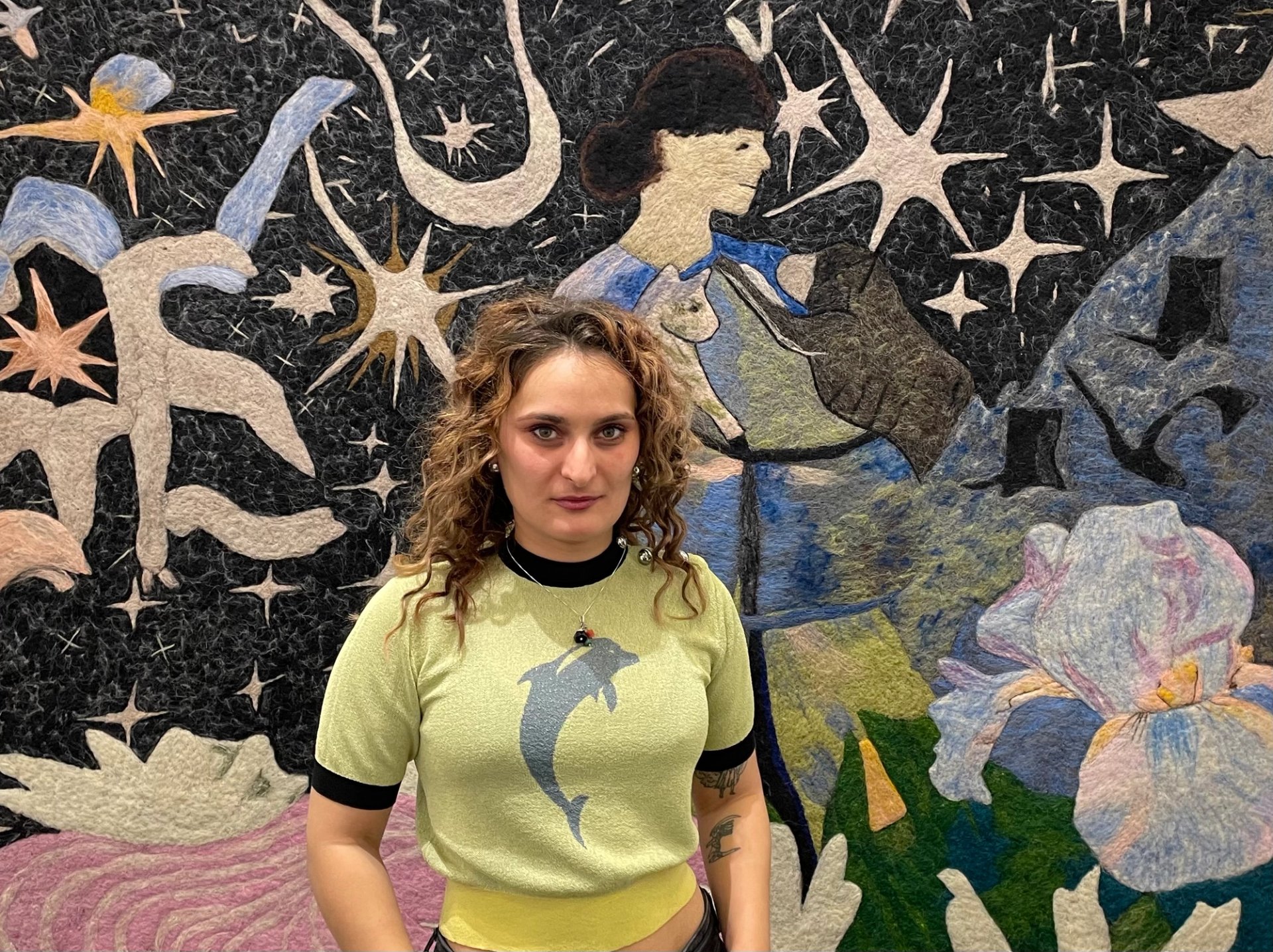 Gvantsa Jishkariani in front of her wall hanging Photo: Anna Somers Cocks