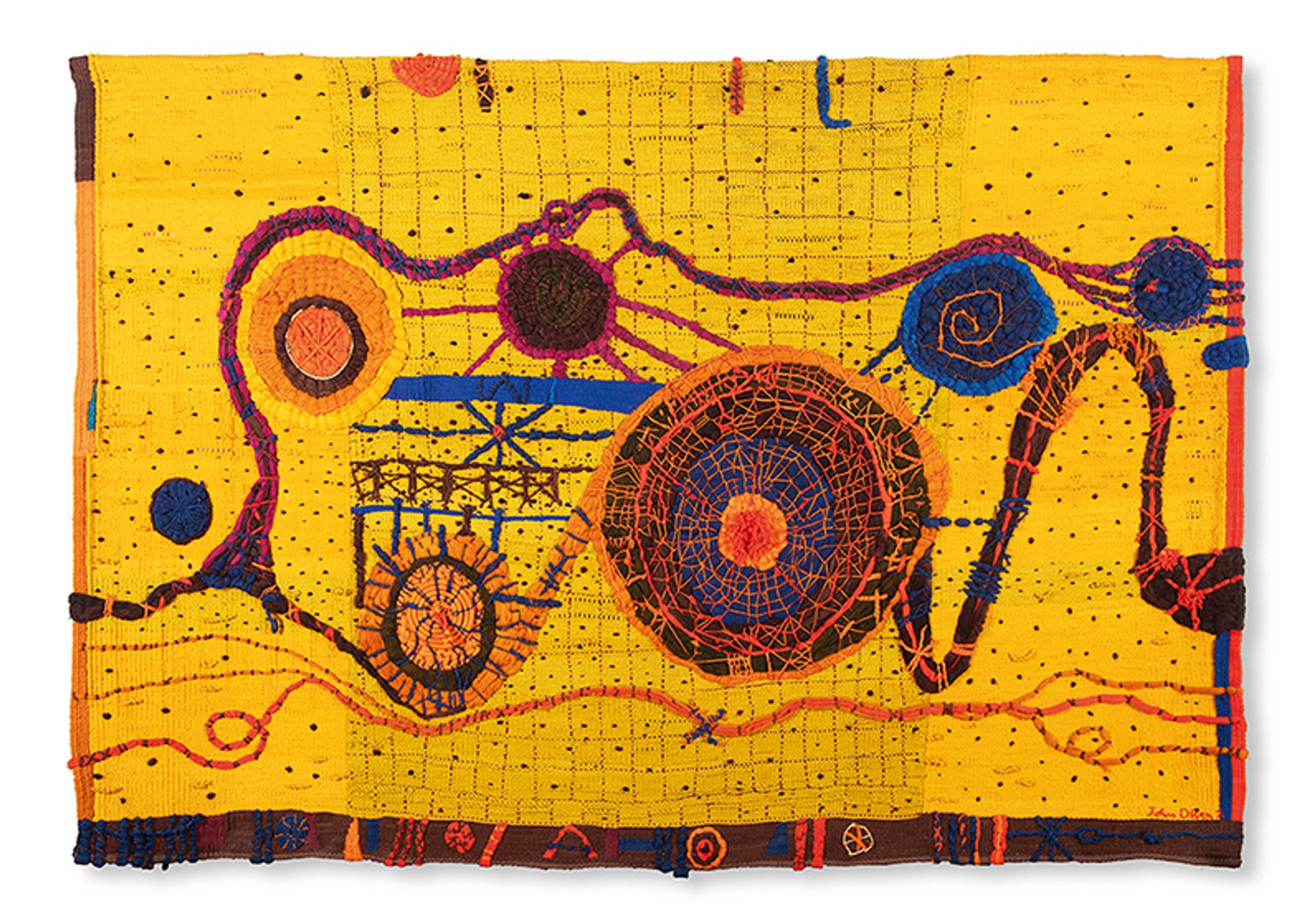 John Olsen, who died in 2023, aged 95, was known in his final years as Australia’s greatest living painter, having been the last surviving member of a cohort who came to define the nation’s Modern art movement. From 1969 into the 1970s, Olsen worked on a number of tapestry designs—including this large, abstract woollen work—with the weavers Bruce Arthur and Deanna Conti, who were living on the remote Timana Island in Queensland. According to Bonhams, Olsen recalled that he first met the couple at the Rudy Komon Gallery in Sydney and subsequently made visits to the island with fellow artist Clifton Pugh.