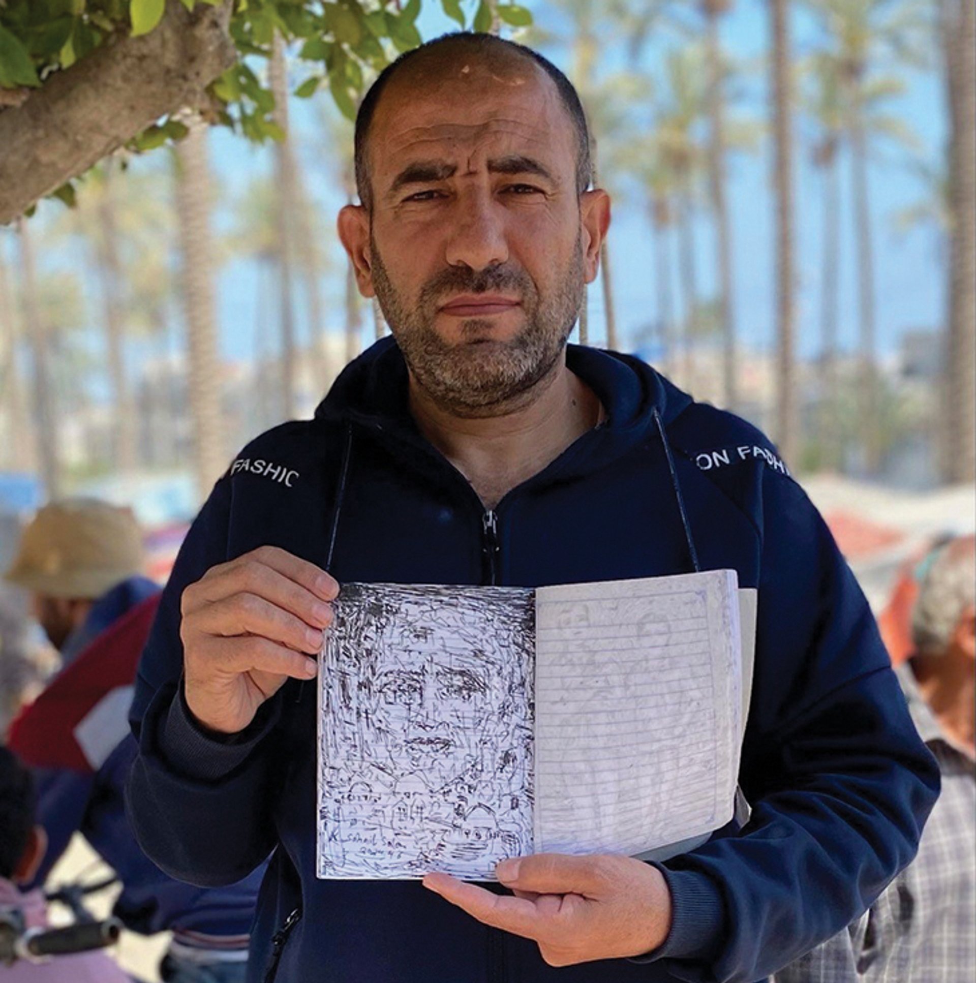 Basel El Maqosui has lost everything: his home in Beit Lahia, close to the border with Israel; his art centre, Shababeek; and a lifetime of work, including his large archive of photographs and cameras. Yet, amid the wreckage and devastation, El Maqosui finds refuge and purpose in his art, using drawing to navigate the tragedies that have struck him, including the loss of family members and friends. “I try to preserve my humanity and take advantage of every moment in which I am able to draw,” El Maqosui says.