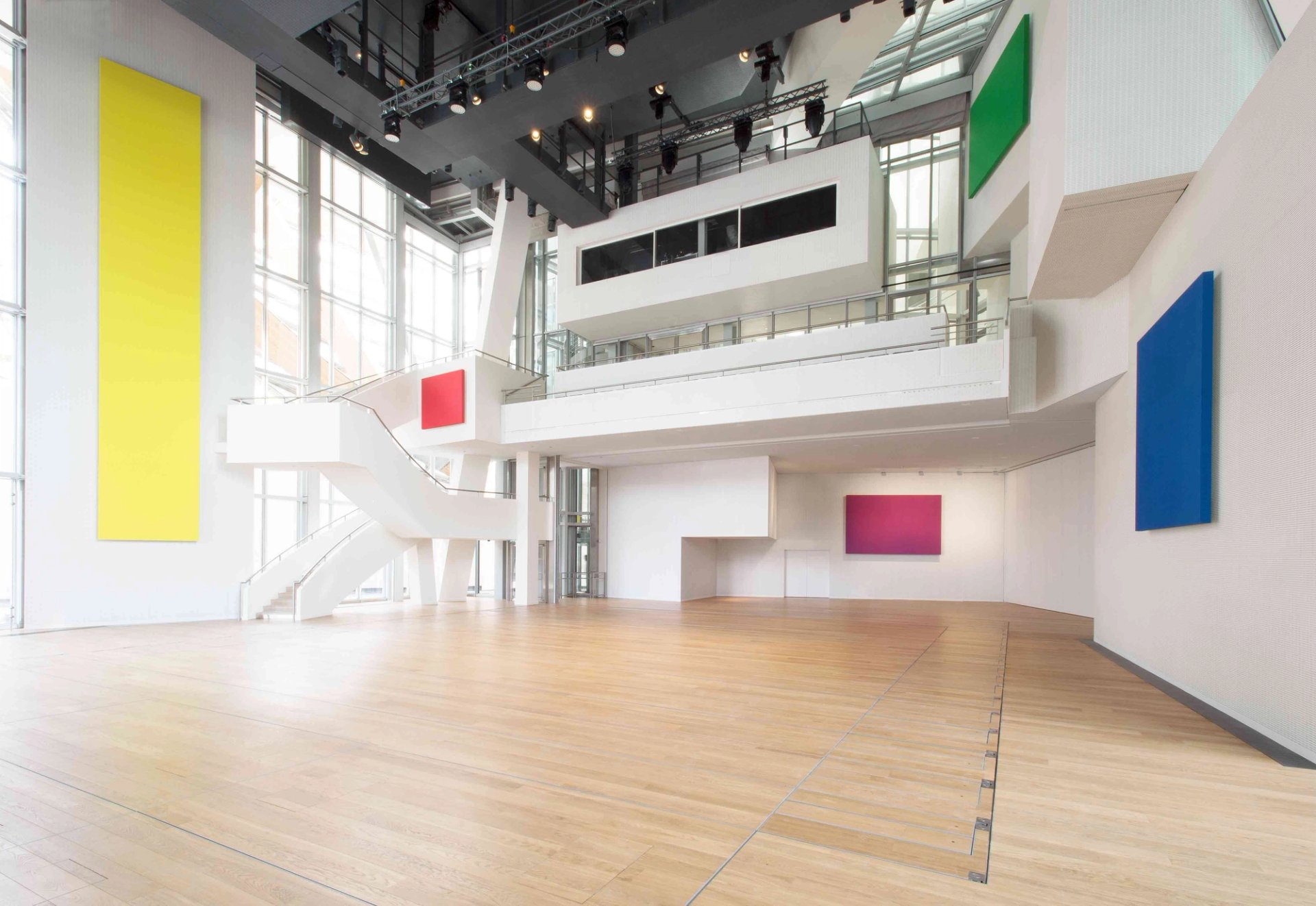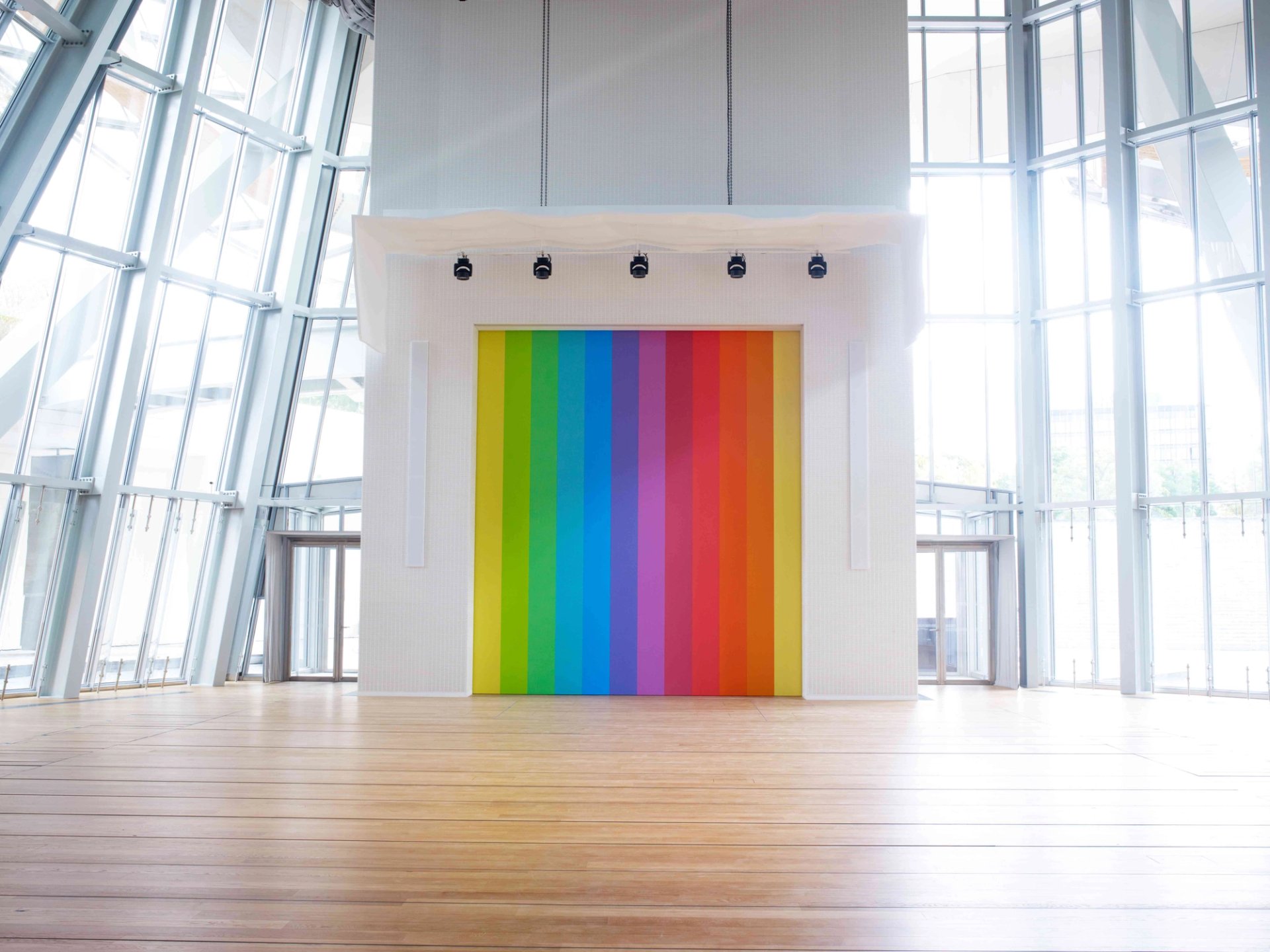 The stage curtain in Fondation Louis Vuitton’s auditorium, featuring one of Ellsworth Kelly’s Spectrum works